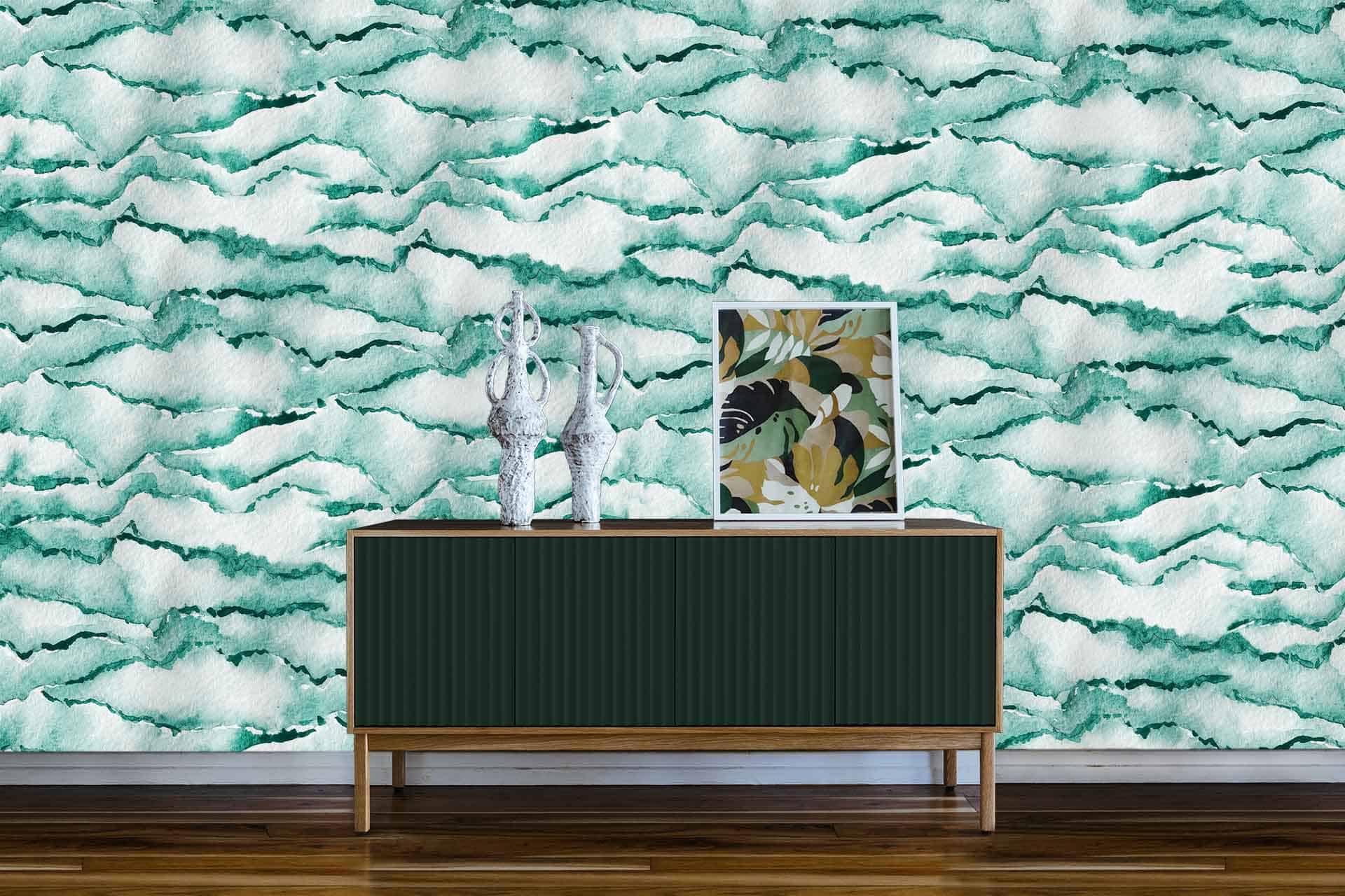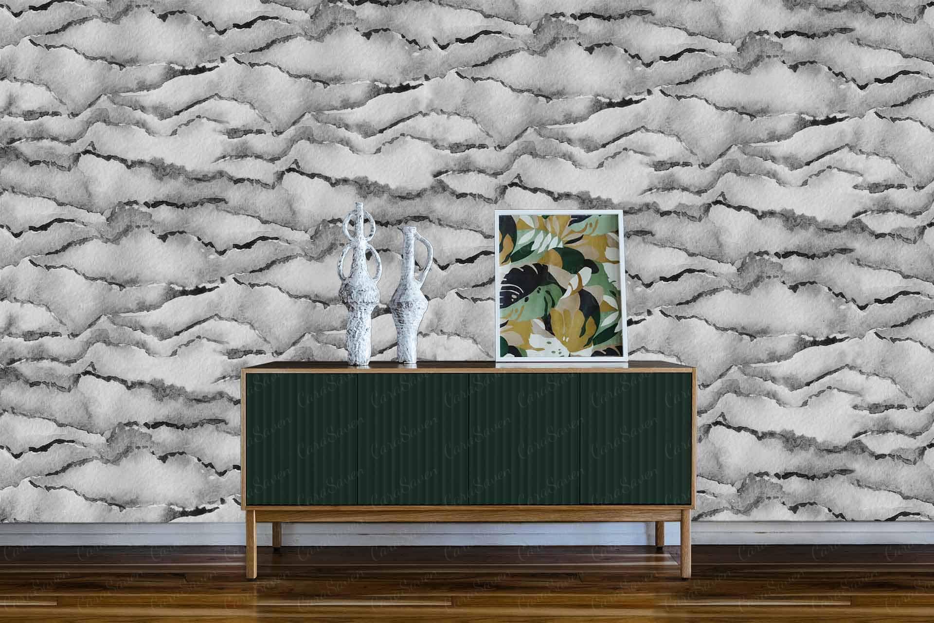 Wallpaper visualizer showcases a wallpaper design with distinct elements and colors, making patterns and shades easily searchable. The focus is on the wallpaper's features as displayed within the minimalist interface.