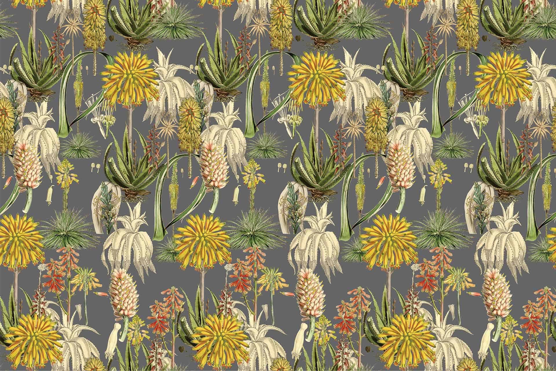 Aloe Aloe is a wallpaper design that is part of our Botanical collection. As with all our designs, it will be redesigned to suit your wall size and shape. Additional changes can be made to the colour and scale of the design at your request. * Please note this image is derived from an old vintage painting/print and does not print out as sharply or crisply as our other designs.