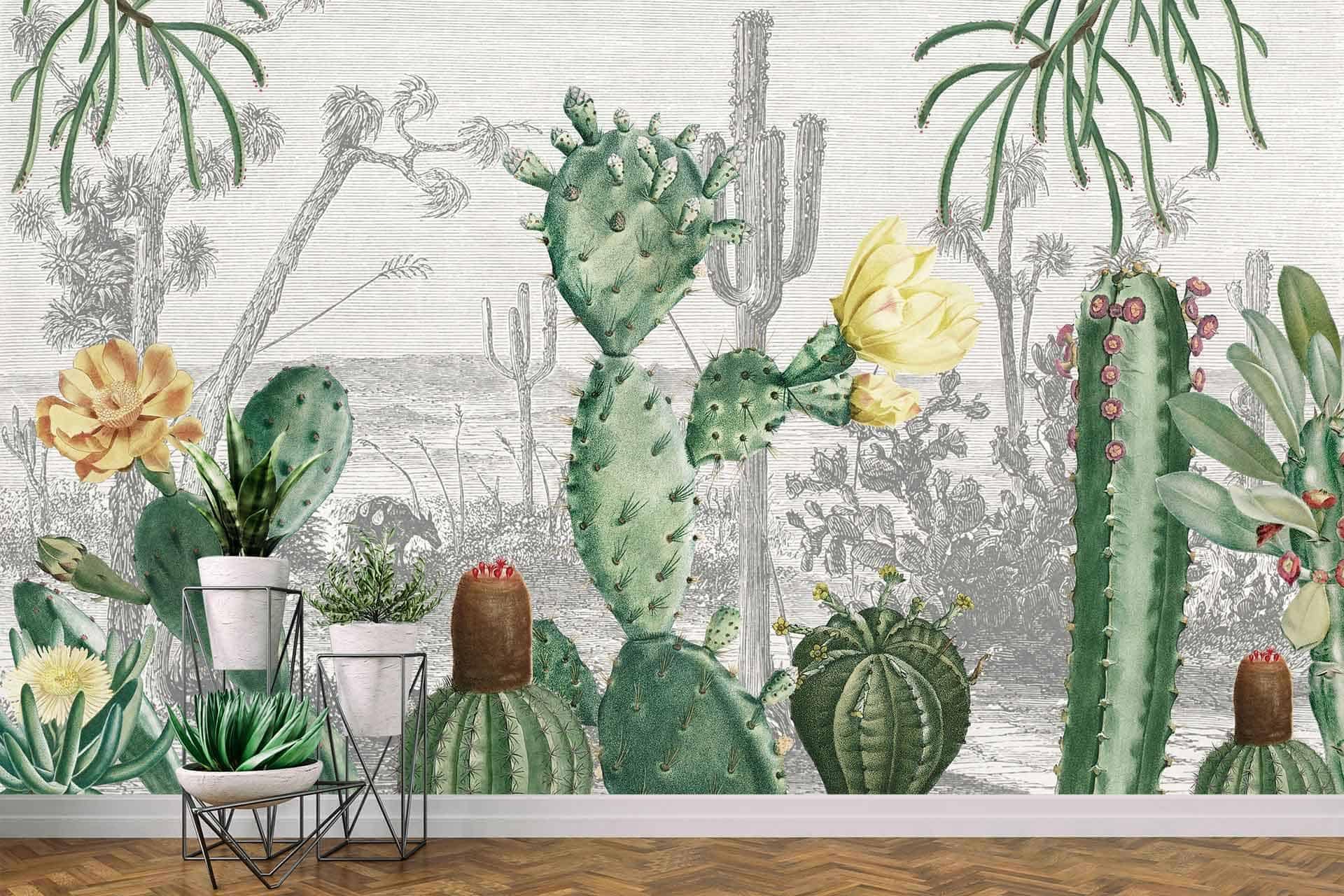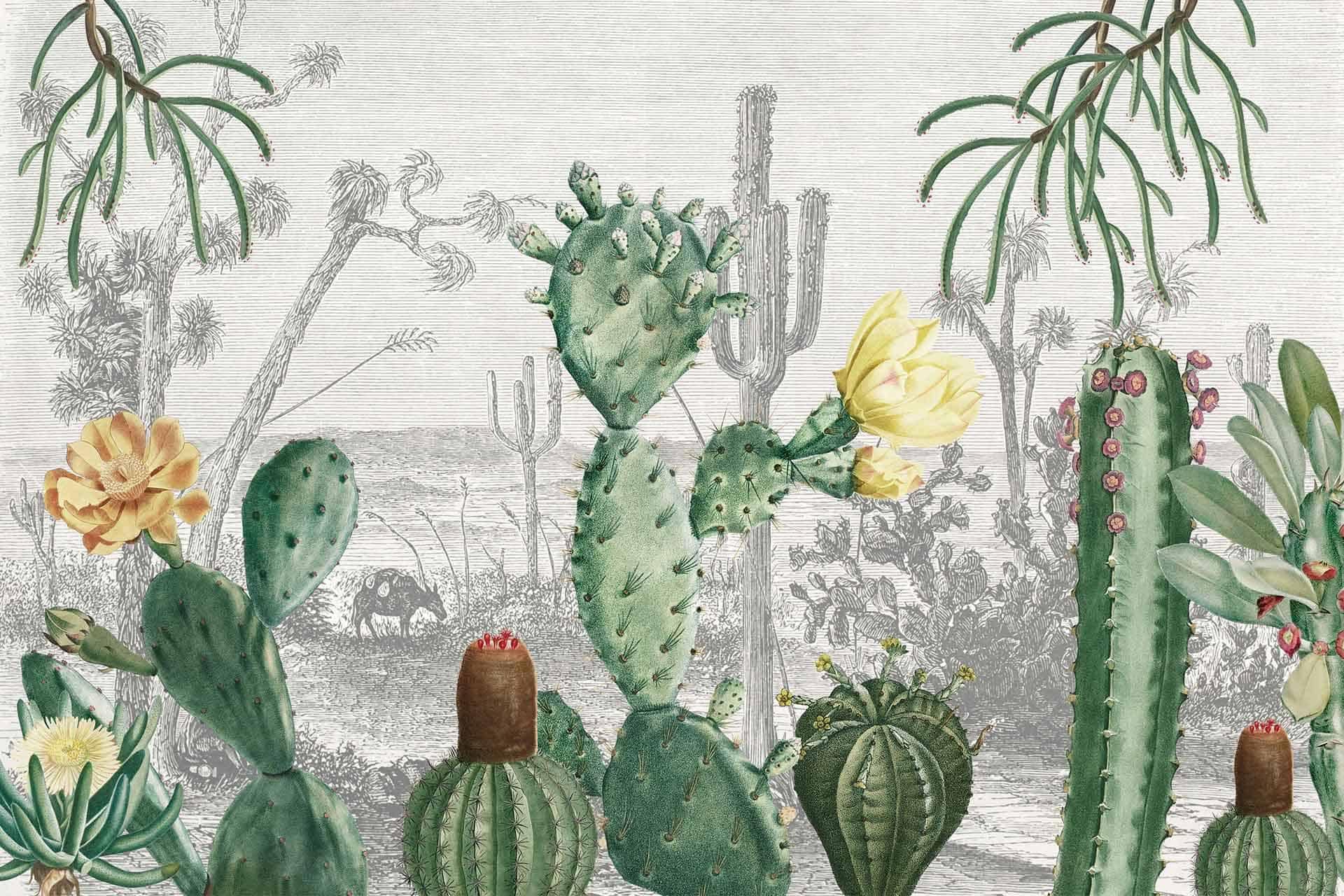 Cactus Heaven is a wallpaper design that is part of our Botanical collection. As with all our designs, it will be redesigned to suit your wall size and shape. Additional changes can be made to the colour and scale of the design at your request.* Please note this image is derived from an old vintage painting/print and does not print out as sharply or crisply as our other designs.