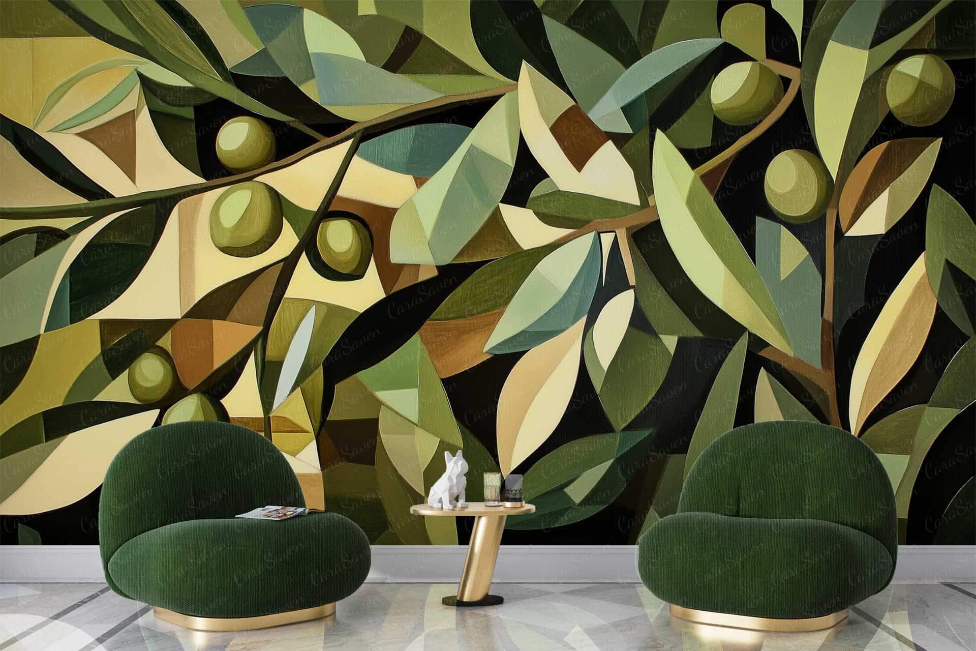 Cubist Olive is a wallpaper design that is part of our Botanical collection. As with all our designs, it will be redesigned to suit your wall size and shape. Additional changes can be made to the colour and scale of the design at your request.