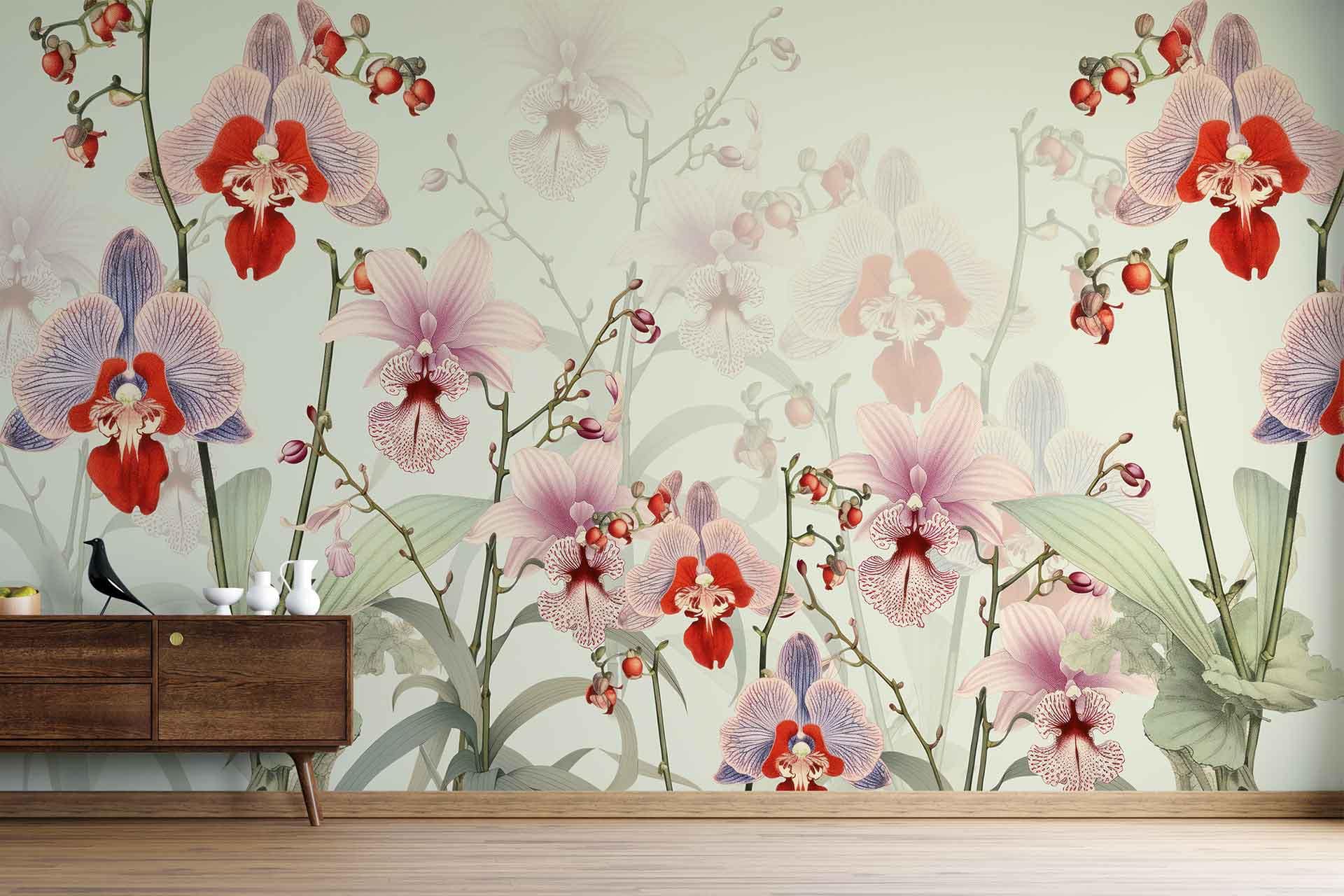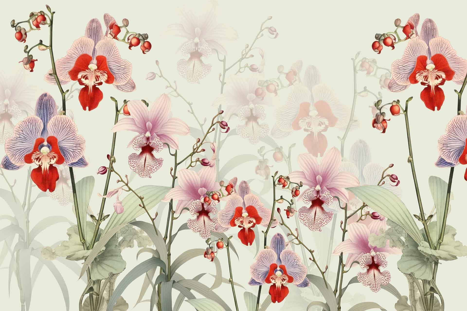 Orchid in red is a wallpaper design that is part of our Botanical collection. As with all our designs, it will be redesigned to suit your wall size and shape. Additional changes can be made to the colour and scale of the design at your request.