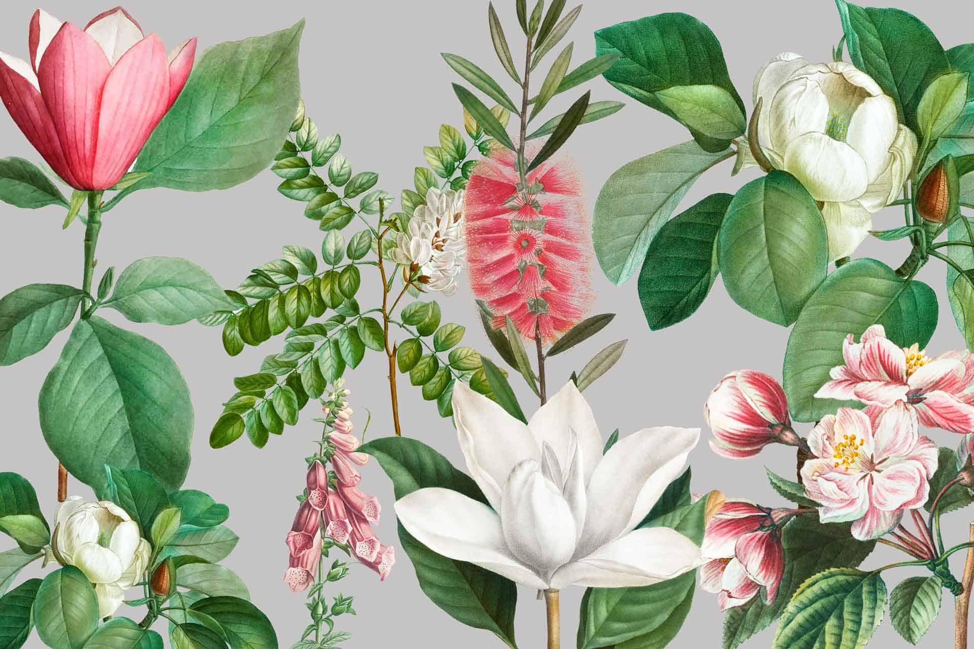 Pretty in Pink is a wallpaper design that is part of our Botanical collection. As with all our designs, it will be redesigned to suit your wall size and shape. Additional changes can be made to the color and scale of the design at your request. * Please note this image is derived from an old vintage painting/print and does not print out as sharply or crisply as our other designs.