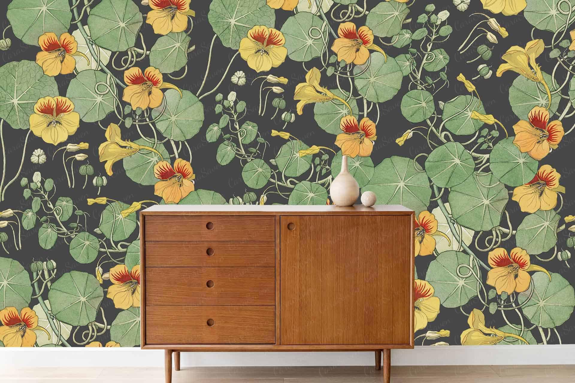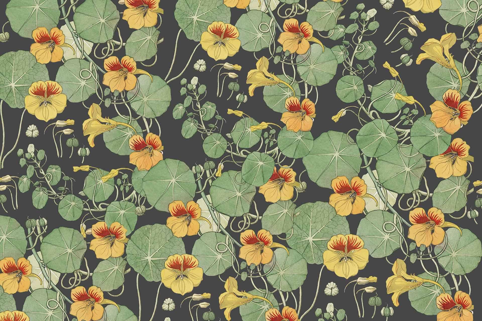 Nasturtium is a wallpaper design that is part of our Floral collection. As with all our designs, it will be redesigned to suit your wall size and shape. Additional changes can be made to the colour and scale of the design at your request.