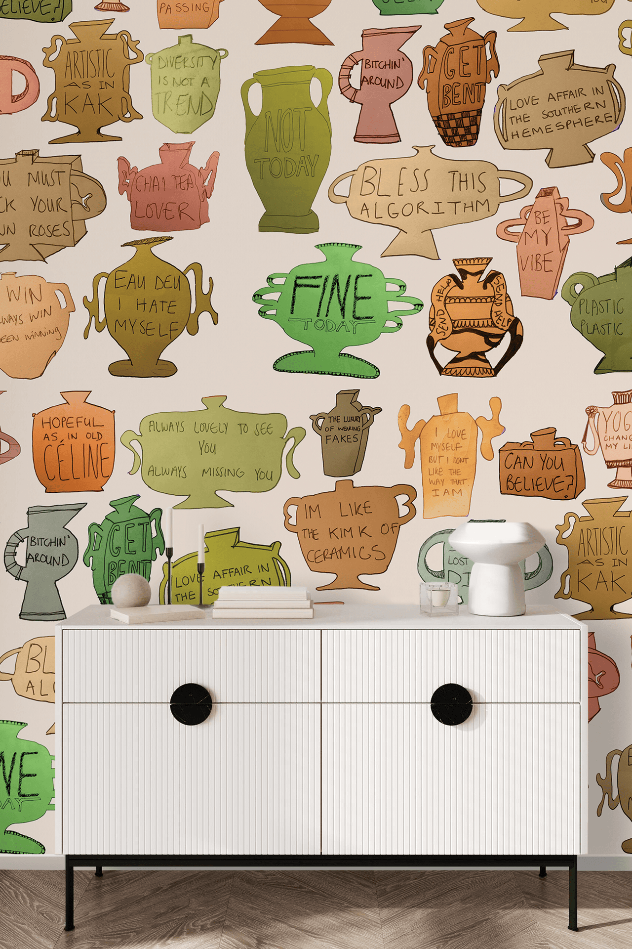 Collage in Orange is a wallpaper design that forms part of our CS&Co collection. It is by the artist Githan Coopoo. As with all our designs, it will be redesigned to suit your wall size and shape.