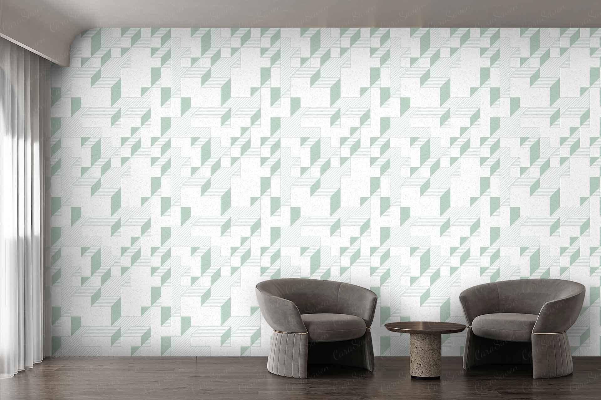 Wallpaper visualizer showcases a wallpaper design with distinct elements and colors, making patterns and shades easily searchable. The focus is on the wallpaper's features as displayed within the minimalist interface.