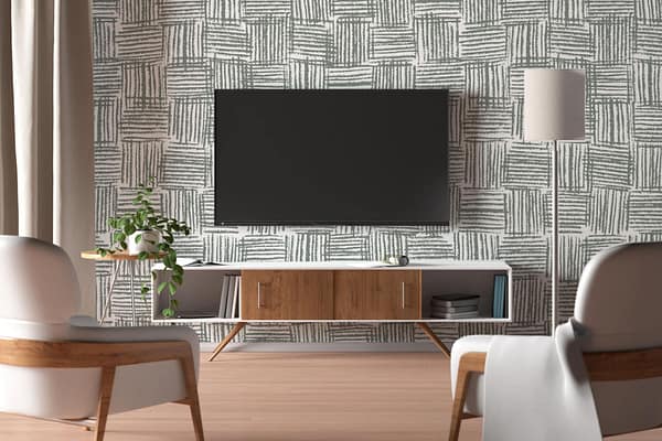 Wallpaper visualizer showcases a wallpaper design with distinct elements and colors, making patterns and shades easily searchable. The focus is on the wallpaper's features as displayed within the minimalist interface.