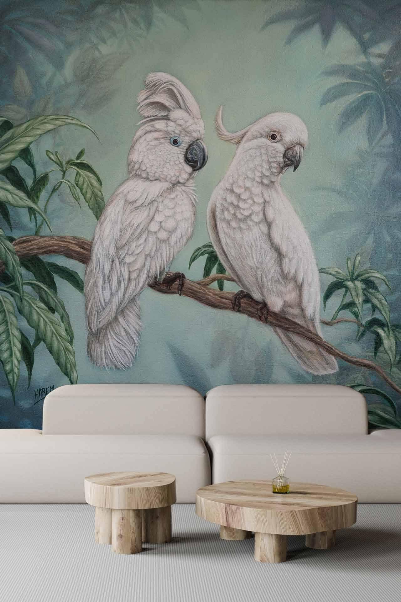 Cockatoos is a wallpaper design that forms part of our CS&Co collection. It is by the artist Harem. As with all our designs, it will be redesigned to suit your wall size and shape.