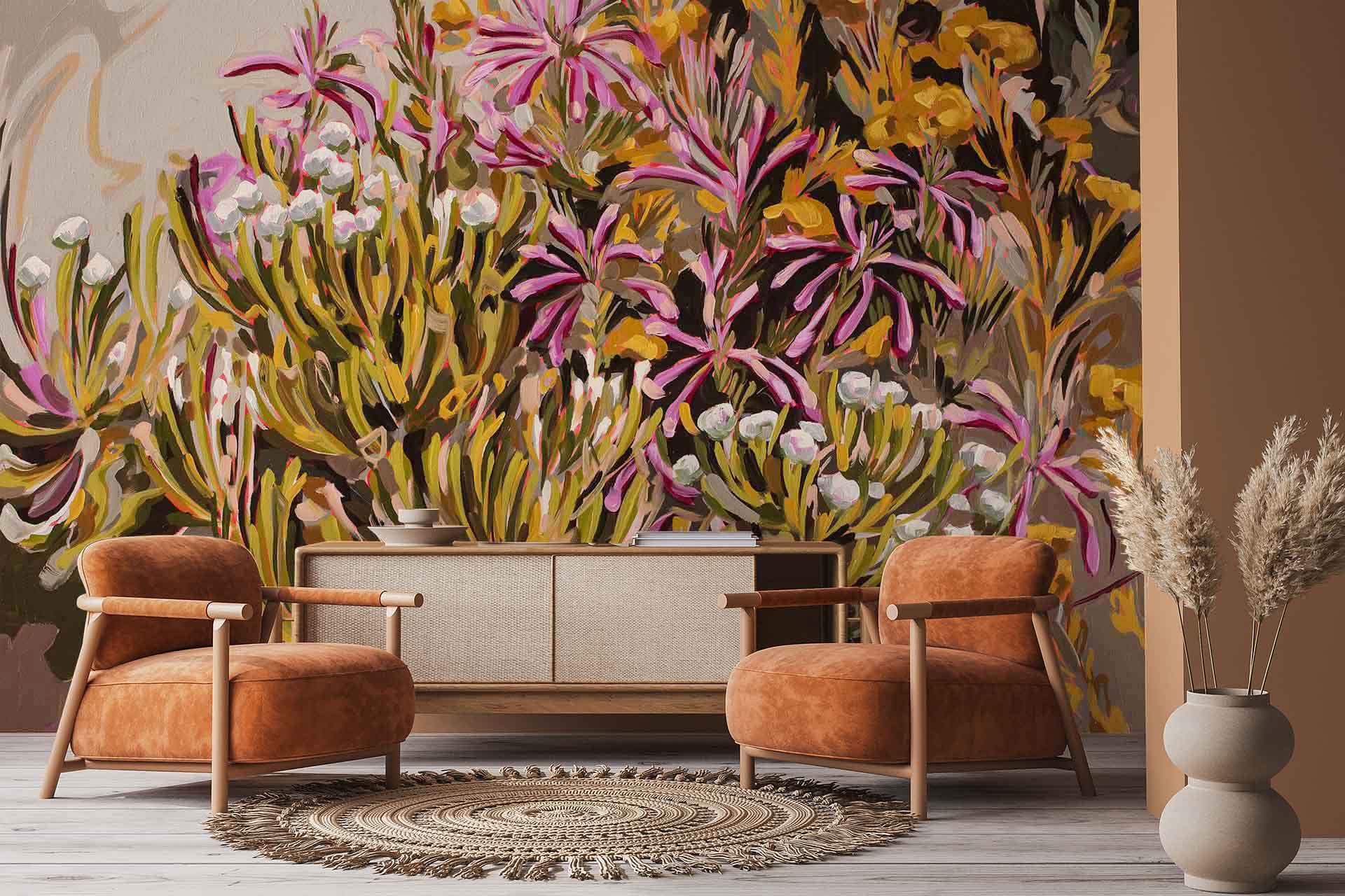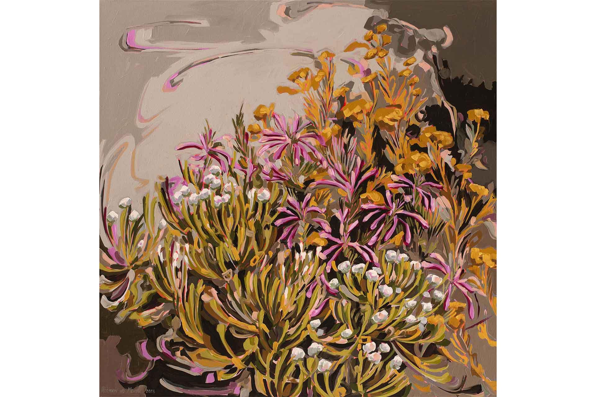 2024 Erica, Helichrysum and Brunia – Amplify series is a wallpaper design that forms part of our CS&Co collection. It is by the artist Hermien van der Merwe. As with all our designs, it will be redesigned to suit your wall size and shape.