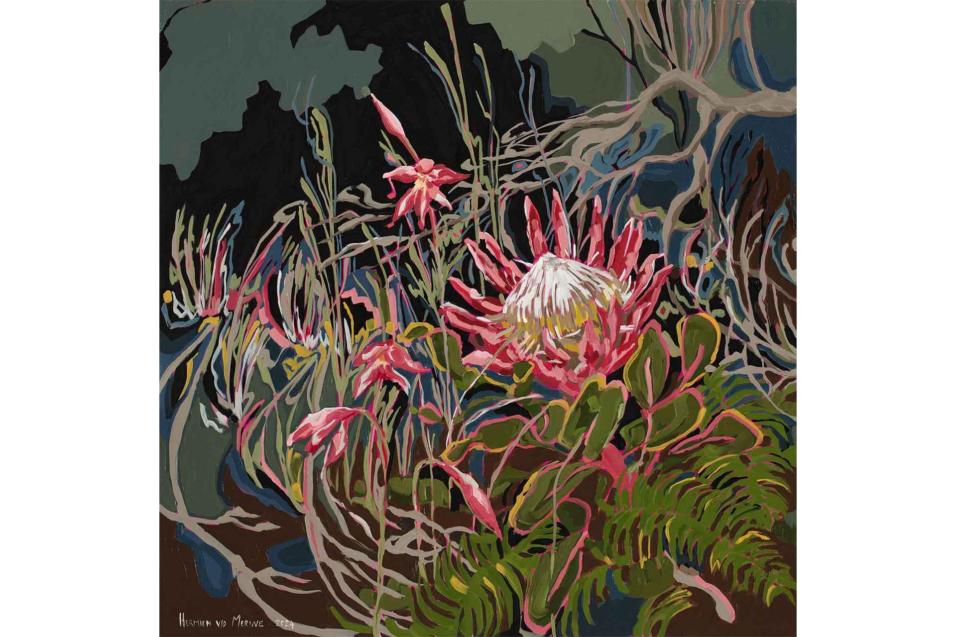 2024 King Protea, Gladiolus and ferns – Amplify series is a wallpaper design that forms part of our CS&Co collection. It is by the artist Hermien van der Merwe. As with all our designs, it will be redesigned to suit your wall size and shape.