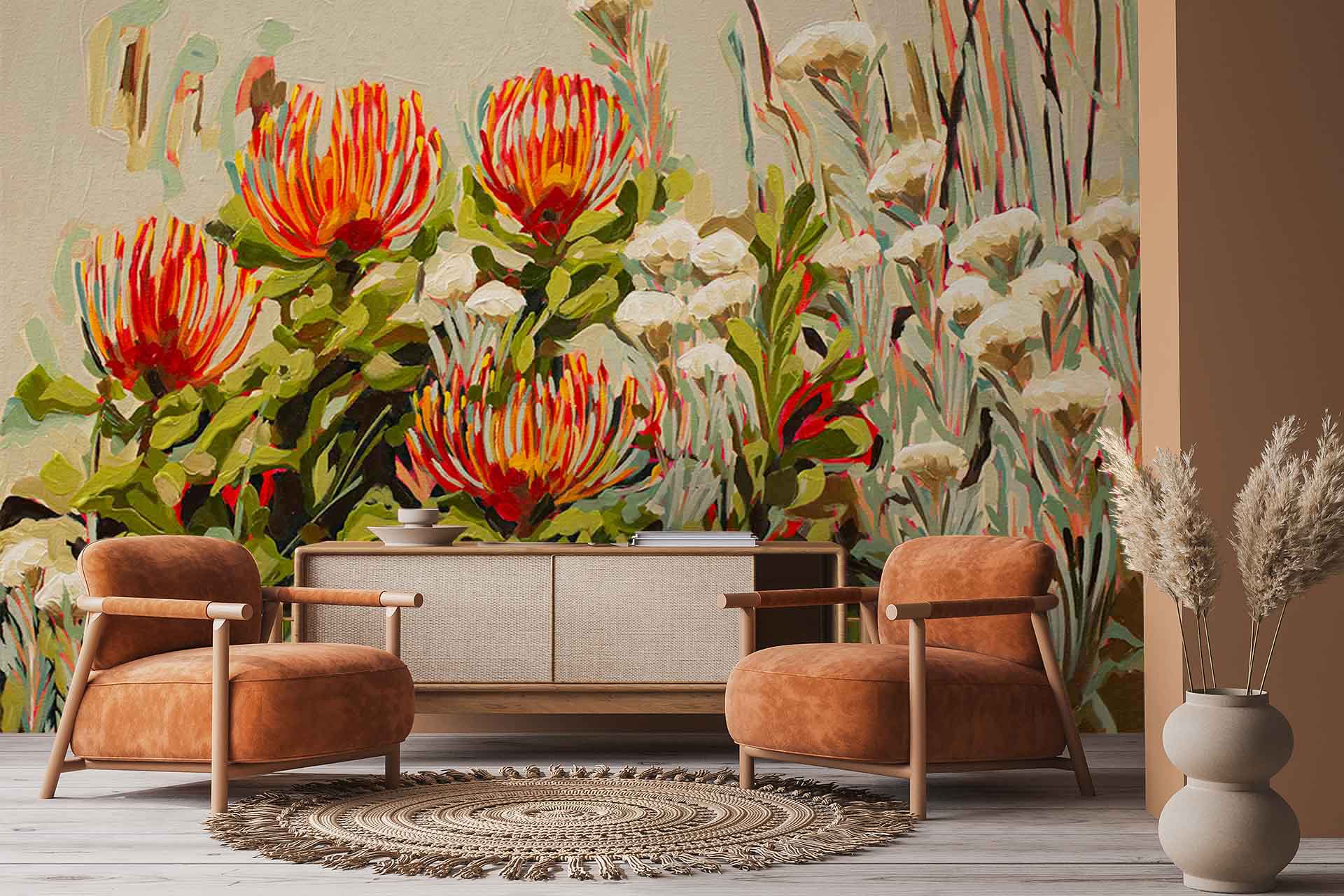 2024 Pincushions and Blombos – Transition series is a wallpaper design that forms part of our CS&Co collection. It is by the artist Hermien van der Merwe. As with all our designs, it will be redesigned to suit your wall size and shape.