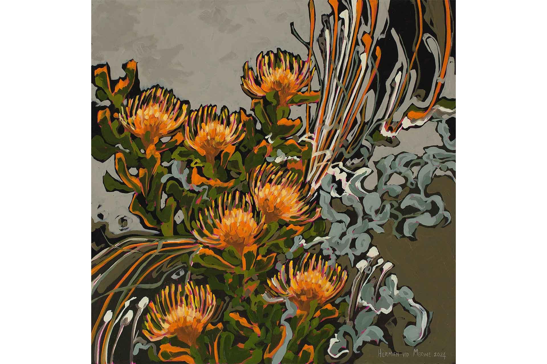 Pincushions, Restios and Helichrysum leaves – Amplify series