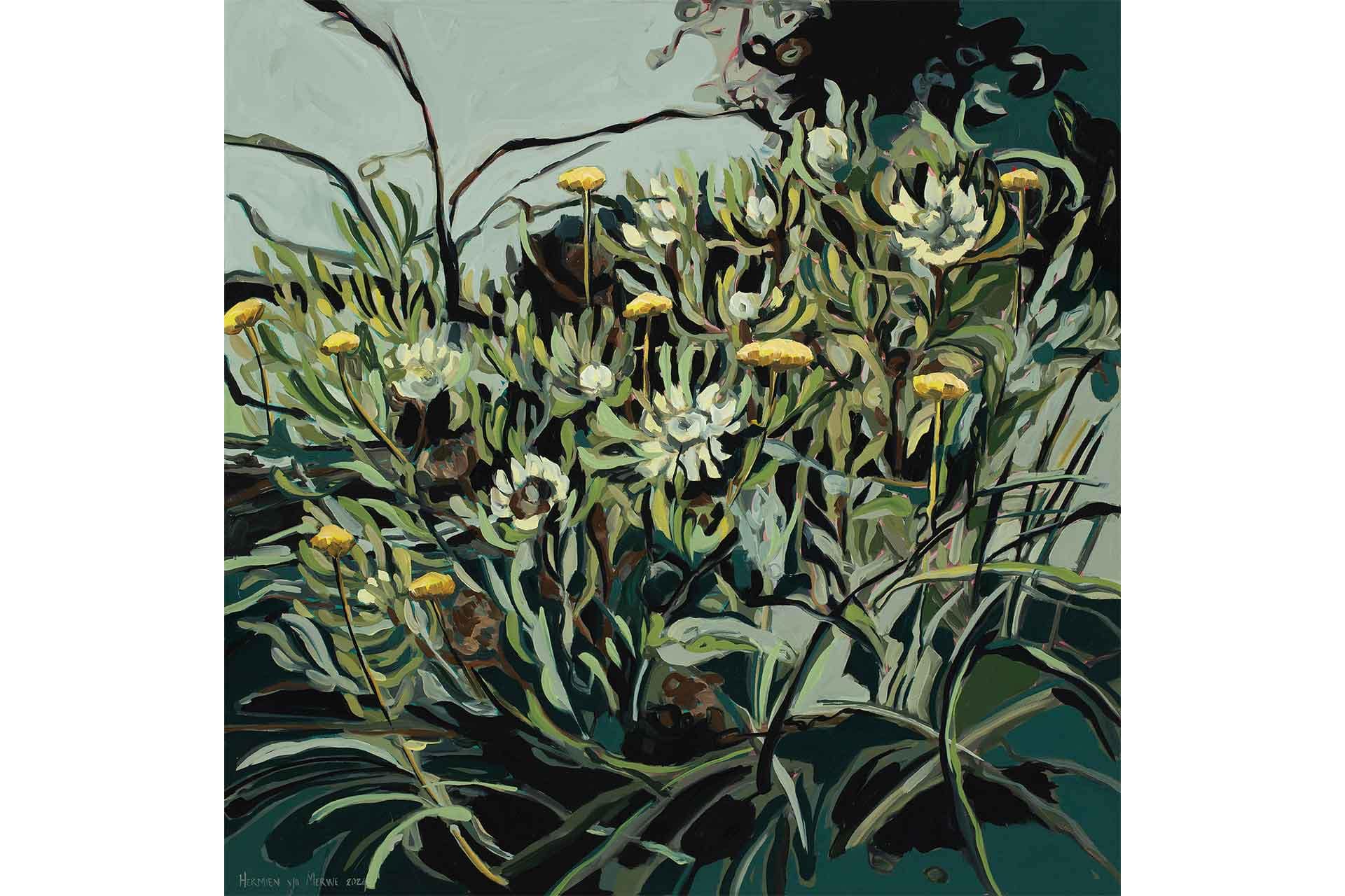 2024 Protea Scolymocephala – Growth series is a wallpaper design that forms part of our CS&Co collection. It is by the artist Hermien van der Merwe. As with all our designs, it will be redesigned to suit your wall size and shape.