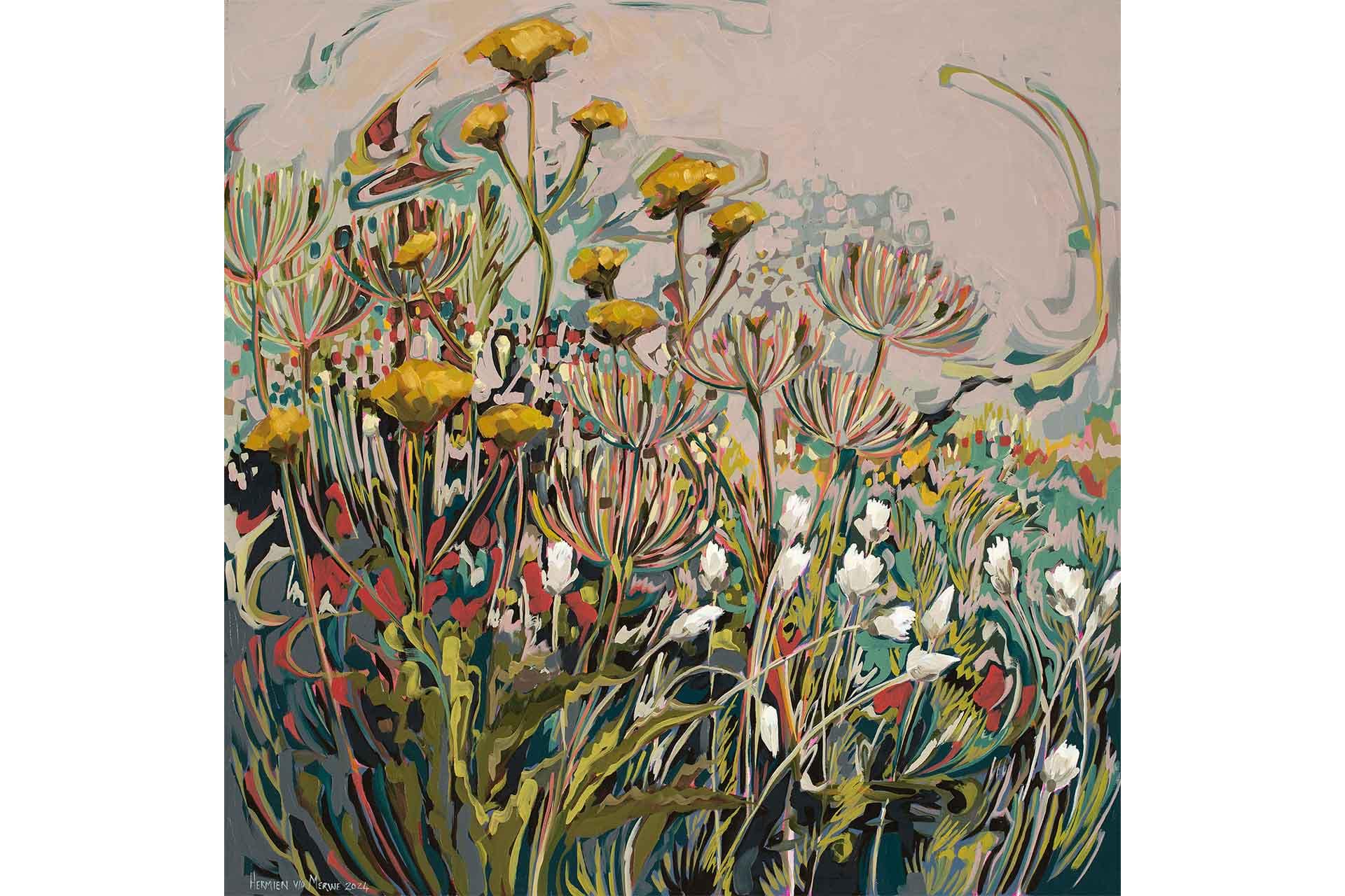 2024 Tontelblaar, wilde fennel en sewejaartjies – Amplify series is a wallpaper design that forms part of our CS&Co collection. It is by the artist Hermien van der Merwe. As with all our designs, it will be redesigned to suit your wall size and shape.