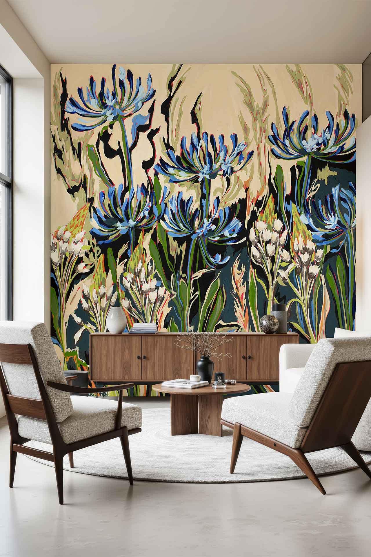 Agapanthus and Chinkerinchee Unspoken Series is a wallpaper design that forms part of our CS&Co collection. It is by the artist Hermien van der Merwe. As with all our designs, it will be redesigned to suit your wall size and shape.
