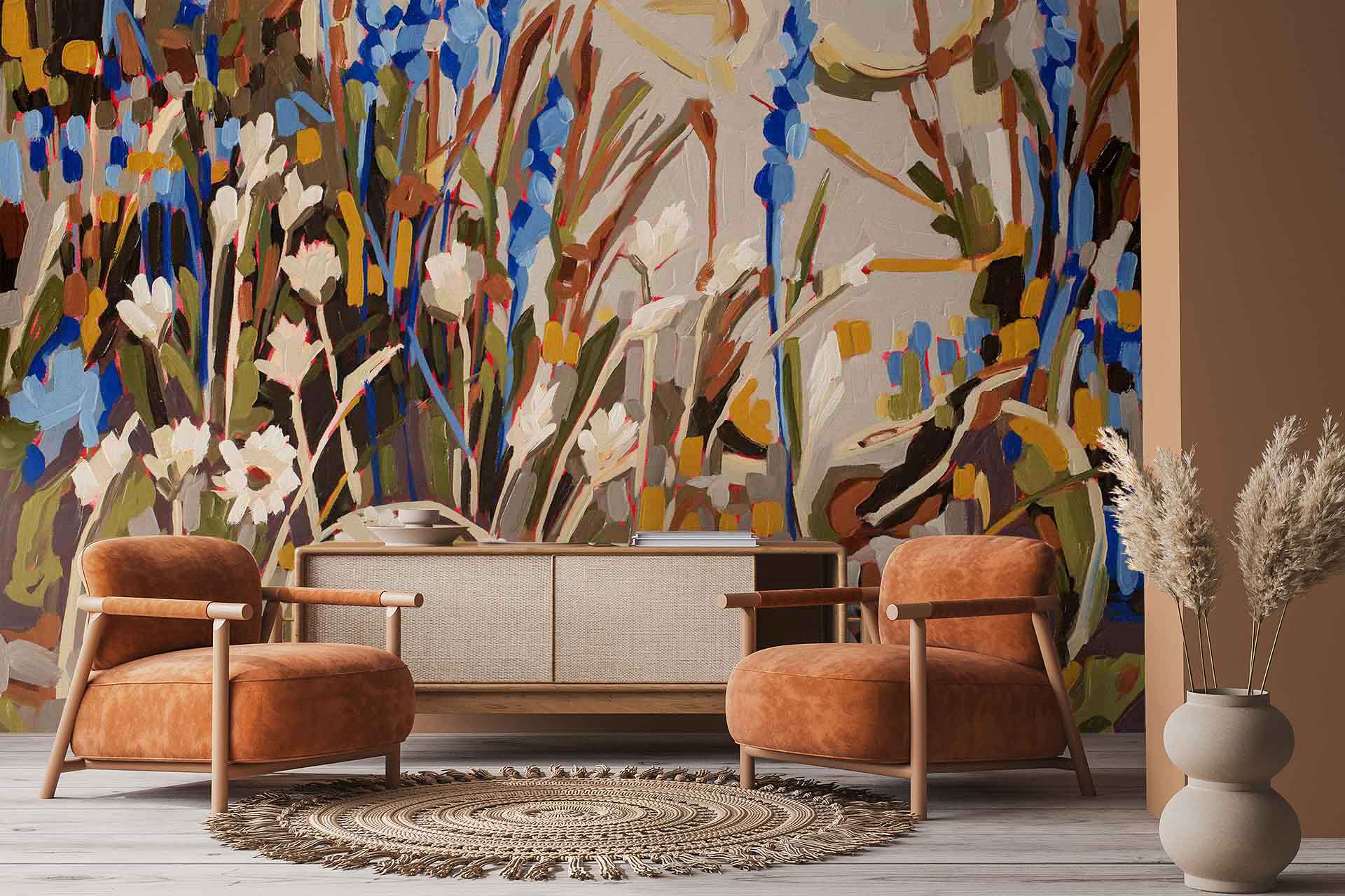 Aristea and Everlasting 2 – Amplify series is a wallpaper design that forms part of our CS&Co collection. It is by the artist Hermien van der Merwe. As with all our designs, it will be redesigned to suit your wall size and shape.