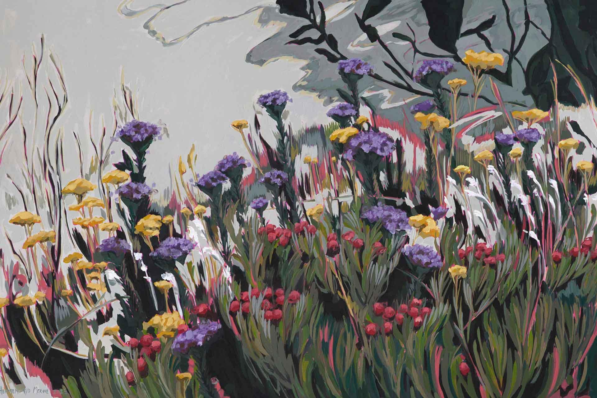 Fynbos Landscape with mauve Pseudoselago Serrata – Perception Series is a wallpaper design that forms part of our CS&Co collection. It is by the artist Hermien van der Merwe. As with all our designs, it will be redesigned to suit your wall size and shape.