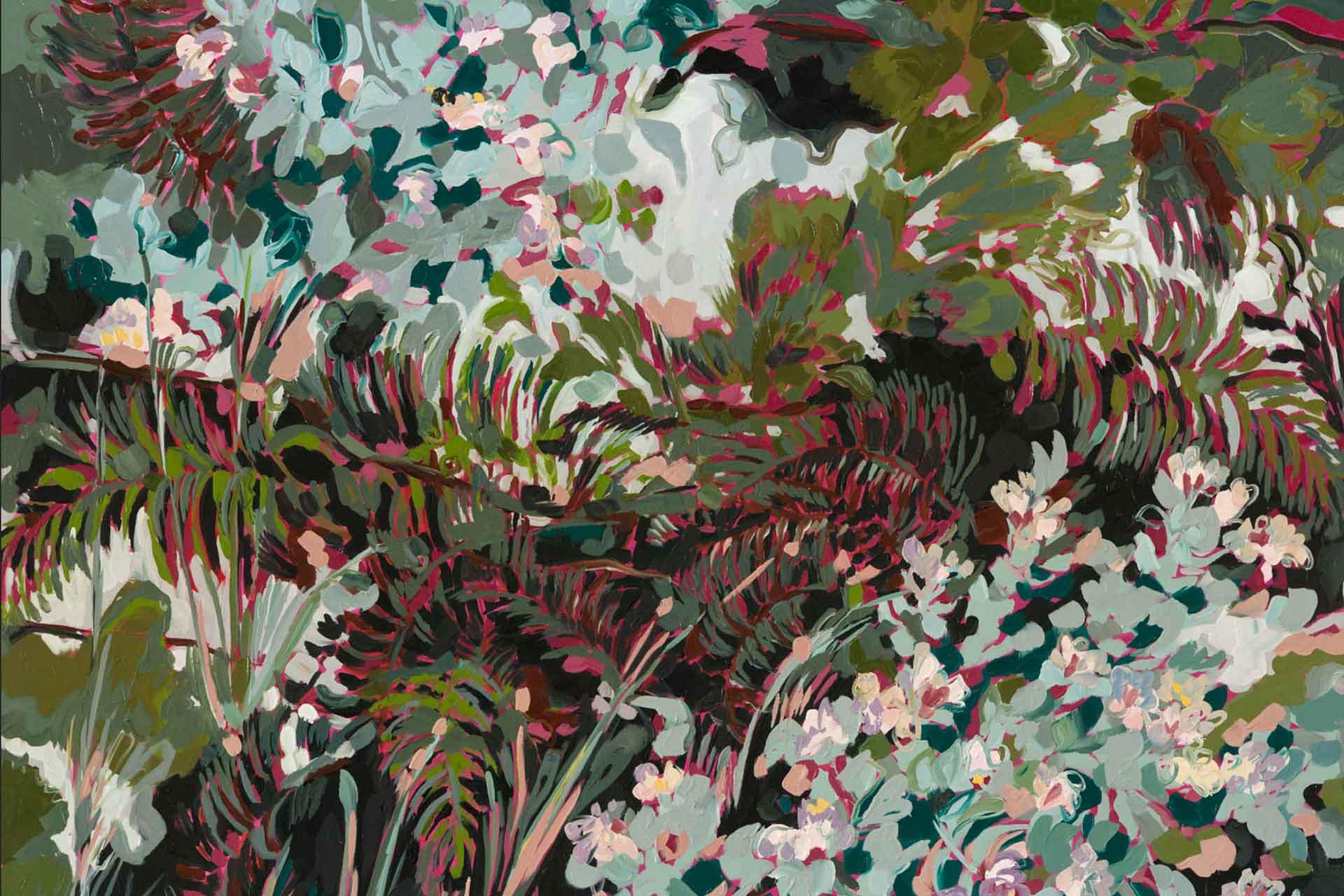 Pyama Bush and Mountain Ferns – Pause Series is a wallpaper design that forms part of our CS&Co collection. It is by the artist Hermien van der Merwe. As with all our designs, it will be redesigned to suit your wall size and shape.