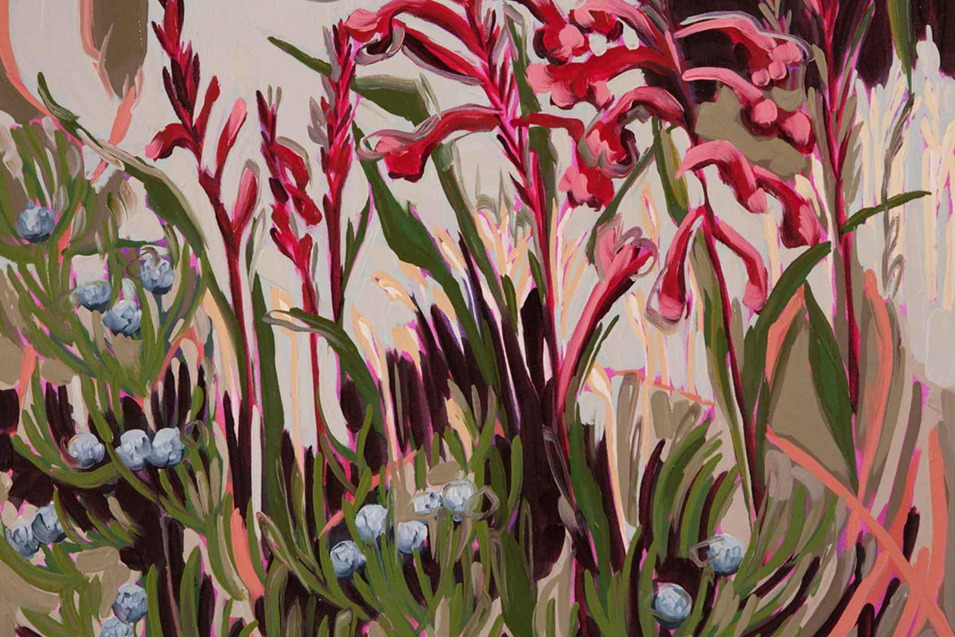 Red Watsonia and Brunia – Perception Series is a wallpaper design that forms part of our CS&Co collection. It is by the artist Hermien van der Merwe. As with all our designs, it will be redesigned to suit your wall size and shape.