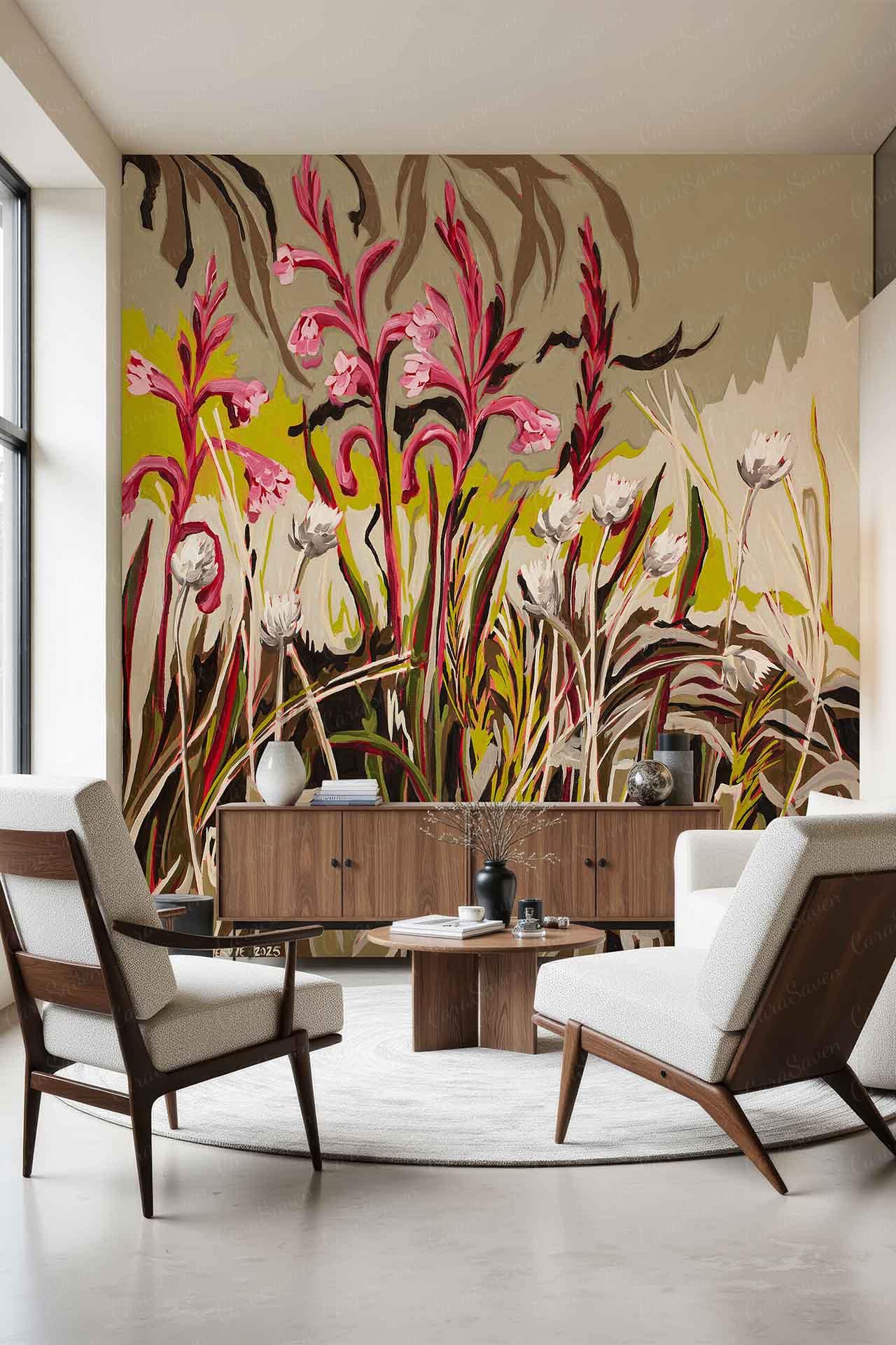 Watsonia And Everlasting Unspoken Series is a wallpaper design that forms part of our CS&Co collection. It is by the artist Hermien van der Merwe. As with all our designs, it will be redesigned to suit your wall size and shape.