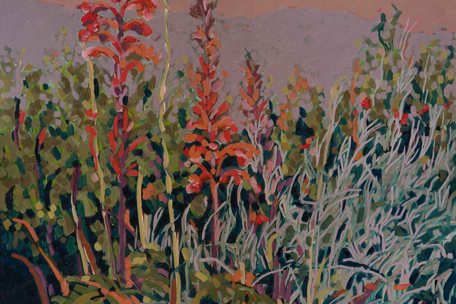 Watsonia is a wallpaper design that forms part of our CS&Co collection. It is by the artist Hermien van der Merwe. As with all our designs, it will be redesigned to suit your wall size and shape.