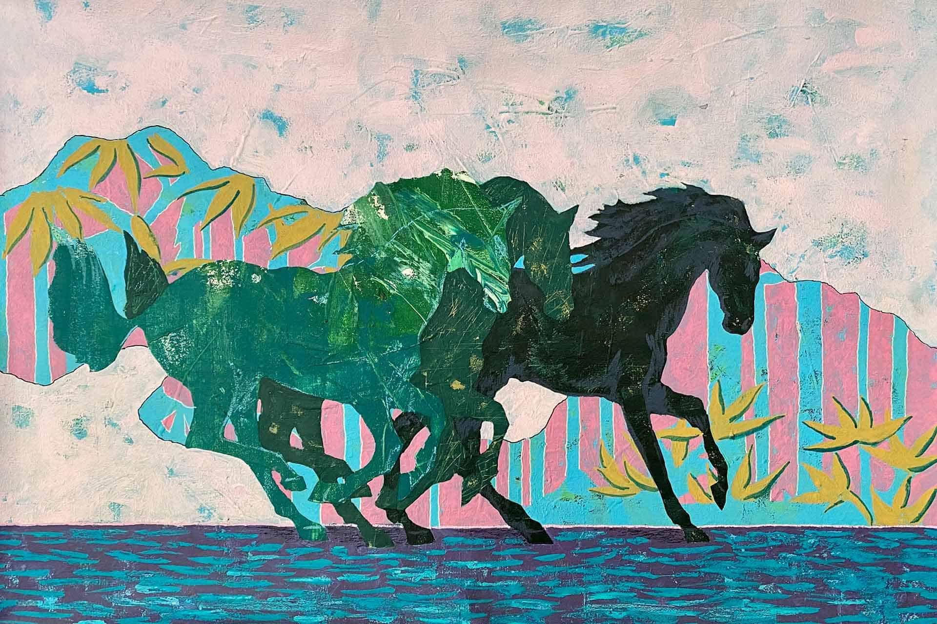Galloping is a wallpaper design that forms part of our CS&Co collection. It is by the artist Jamals Mohamed. As with all our designs, it will be redesigned to suit your wall size and shape.