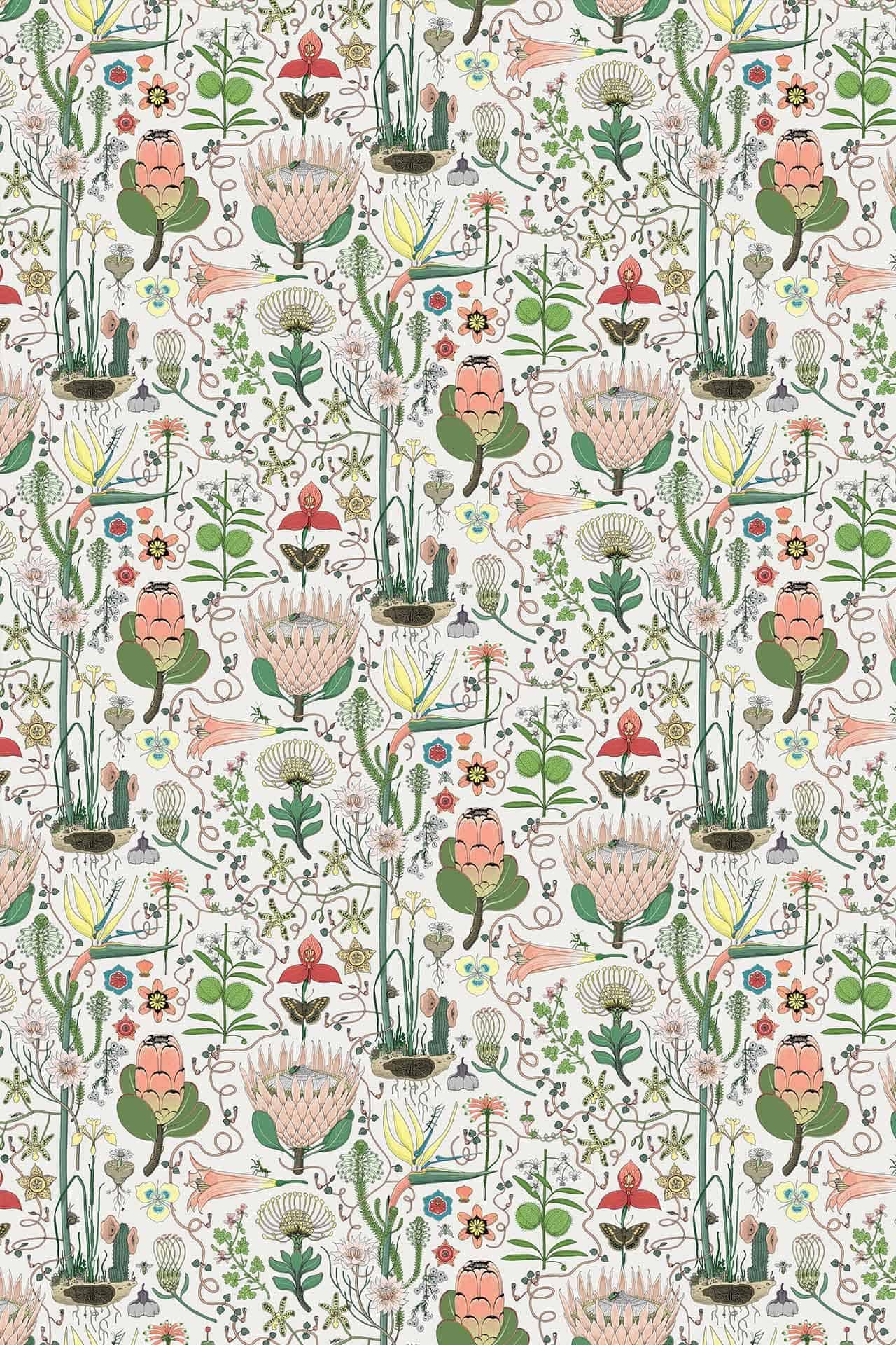 Flowering Plants – Light is a wallpaper design that forms part of our CS&Co collection. It is by the artist Joh De Lange. As with all our designs, it will be redesigned to suit your wall size and shape.