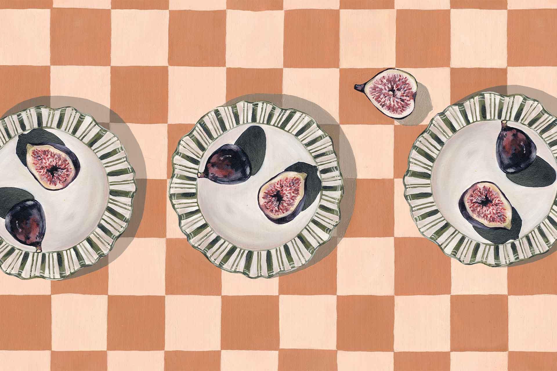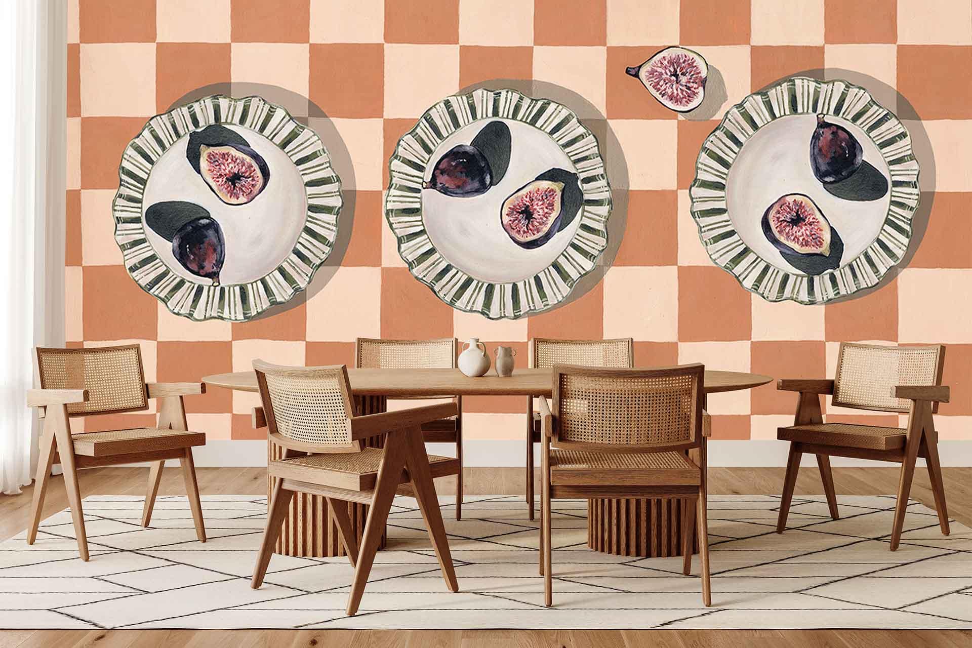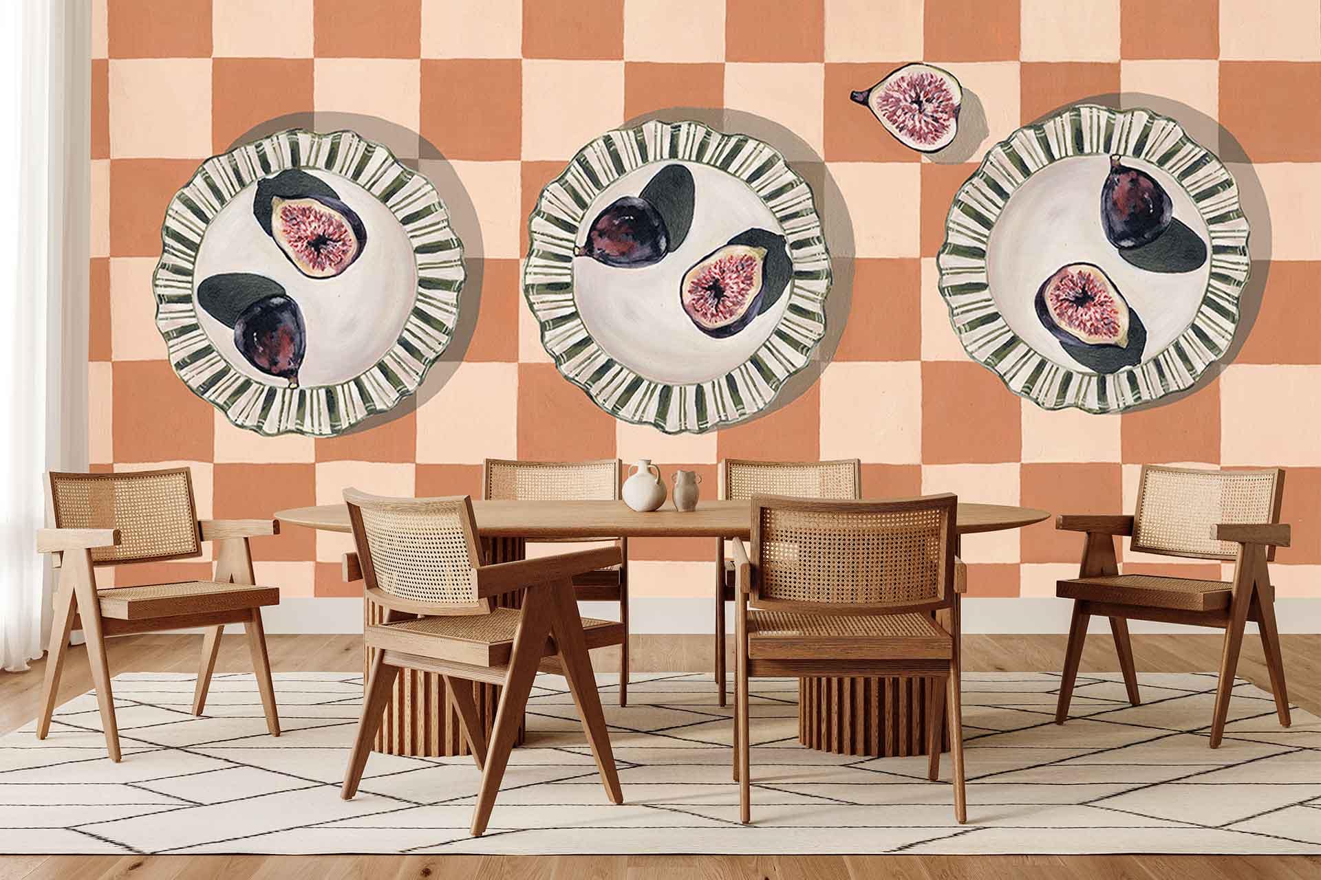 Parisian Figs on Orange Check is a wallpaper design that forms part of our CS&Co collection. It is by the artist Kalm Living. As with all our designs, it will be redesigned to suit your wall size and shape.