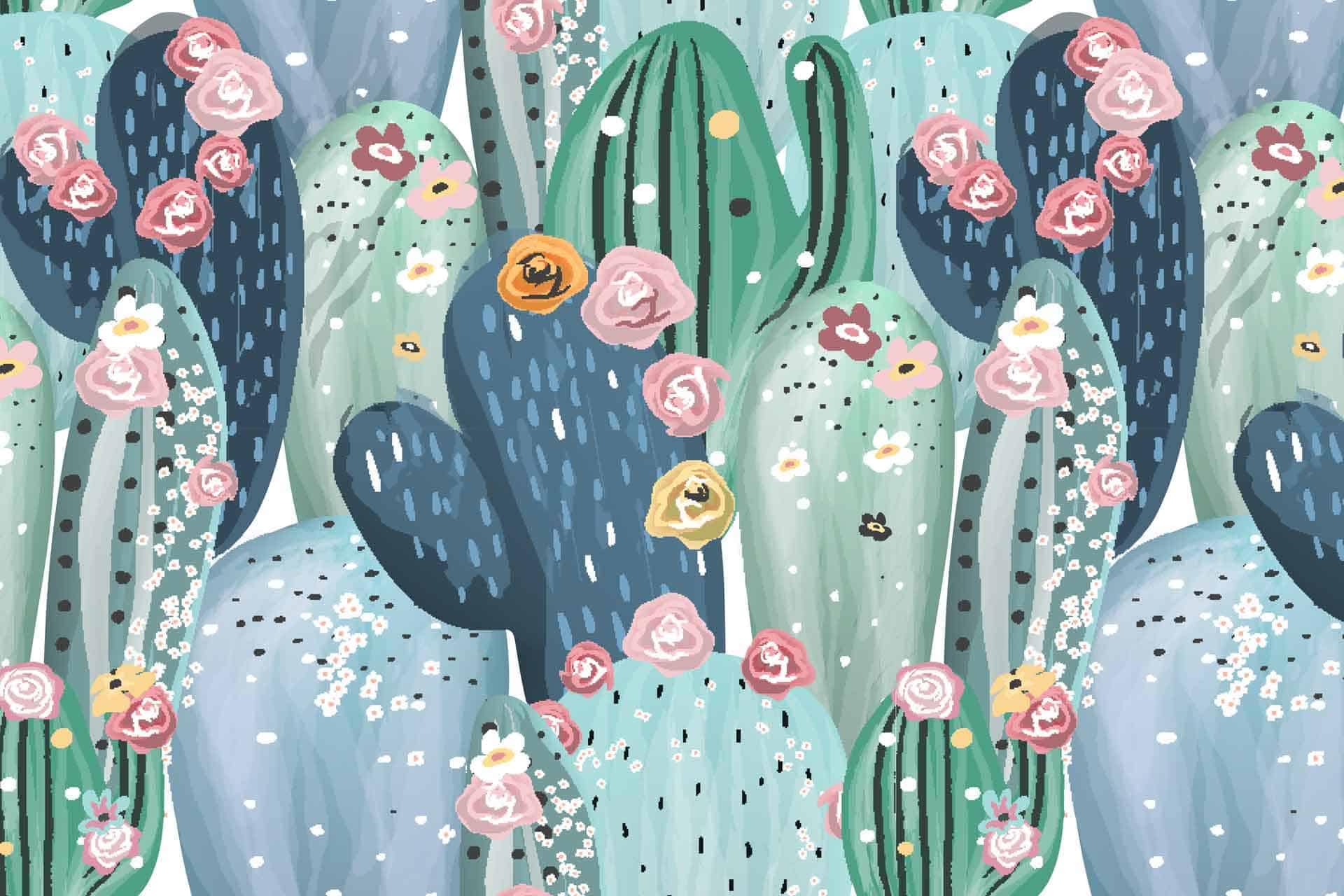 The bathroom features decorative wallpaper with bold, colorful floral patterns in shades of pink, green, and white. The distinctive wallpaper adds a vibrant backdrop behind the vanity and mirrors, easily highlighting its eye-catching design for search.