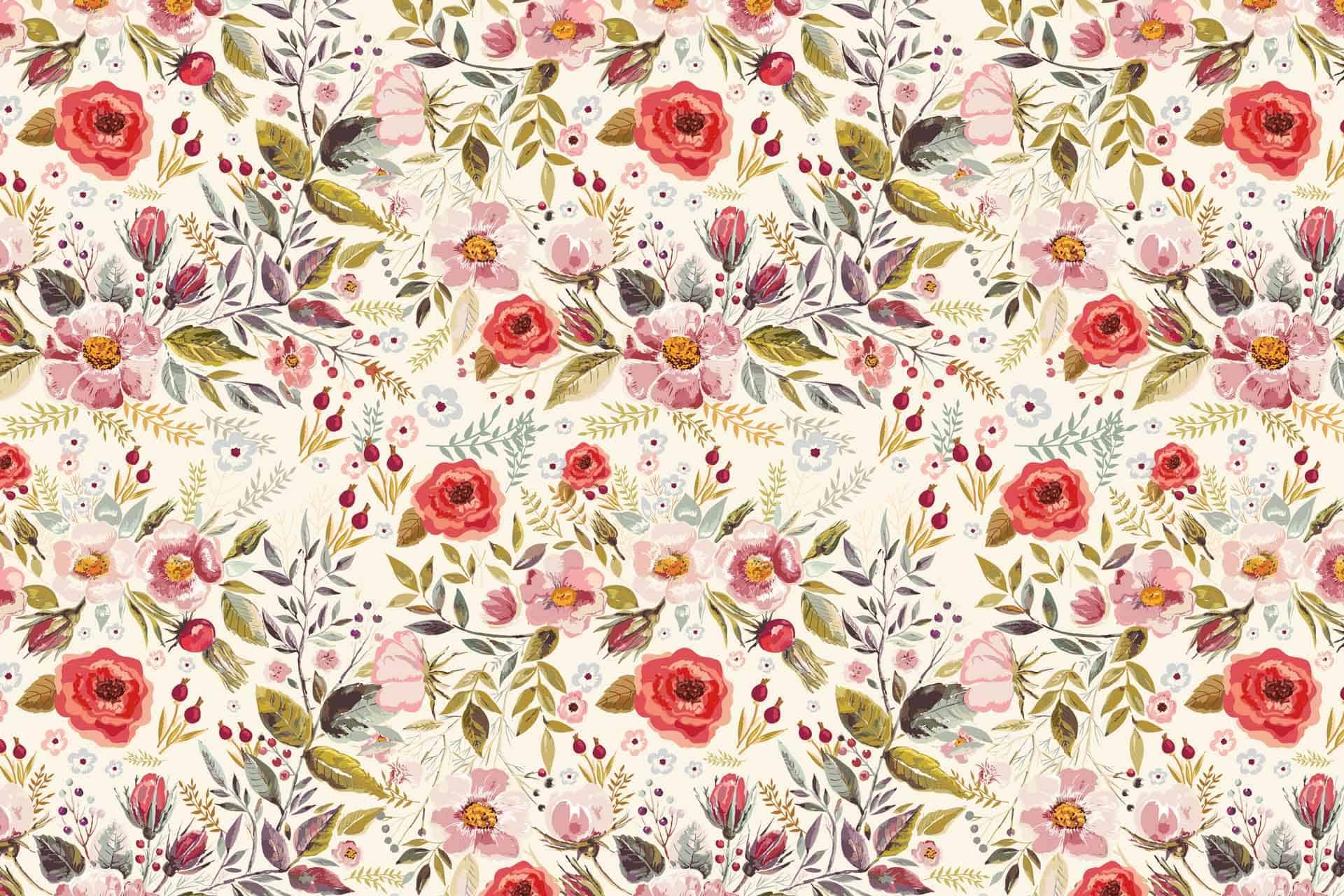 Vibrant floral and bird wallpaper featuring colorful flowers and birds in lively patterns, with bold hues of pink, green, blue, and yellow creating a dynamic focal point in the room.