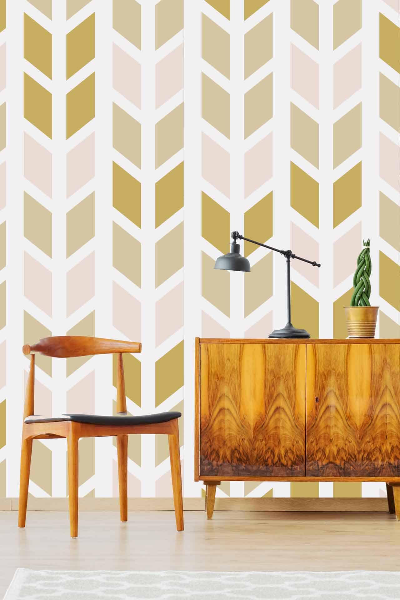 Wallpaper visualizer showcases a wallpaper design with distinct elements and colors, making patterns and shades easily searchable. The focus is on the wallpaper's features as displayed within the minimalist interface.