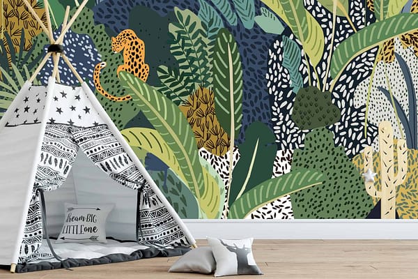 Jungle Cat is a wallpaper design that is part of our Kids collection. As with all our designs, it will be redesigned to suit your wall size and shape. Additional changes can be made to the color and scale of the design at your request.
