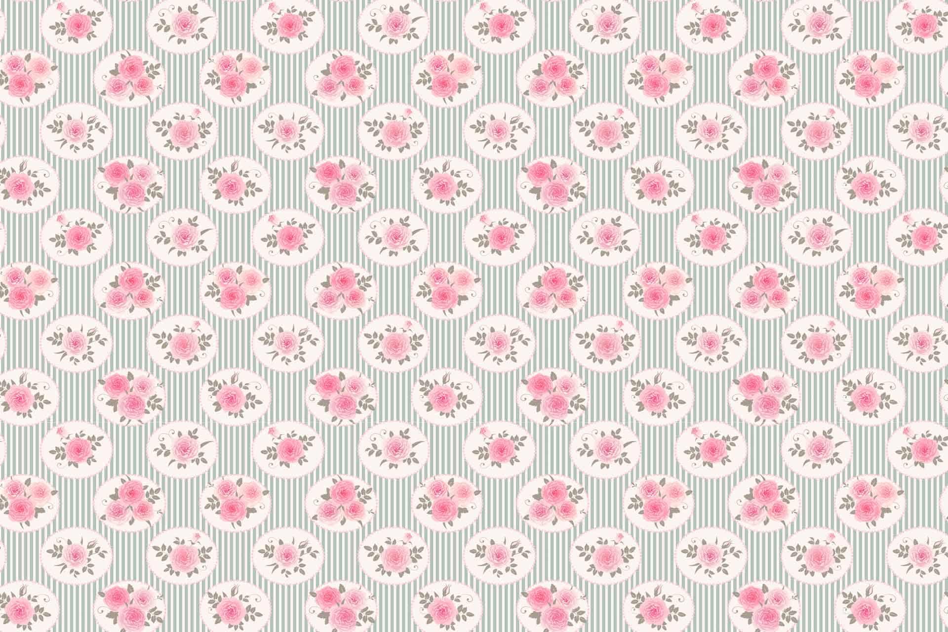 The bathroom features decorative wallpaper with bold, colorful floral patterns in shades of pink, green, and white. The distinctive wallpaper adds a vibrant backdrop behind the vanity and mirrors, easily highlighting its eye-catching design for search.