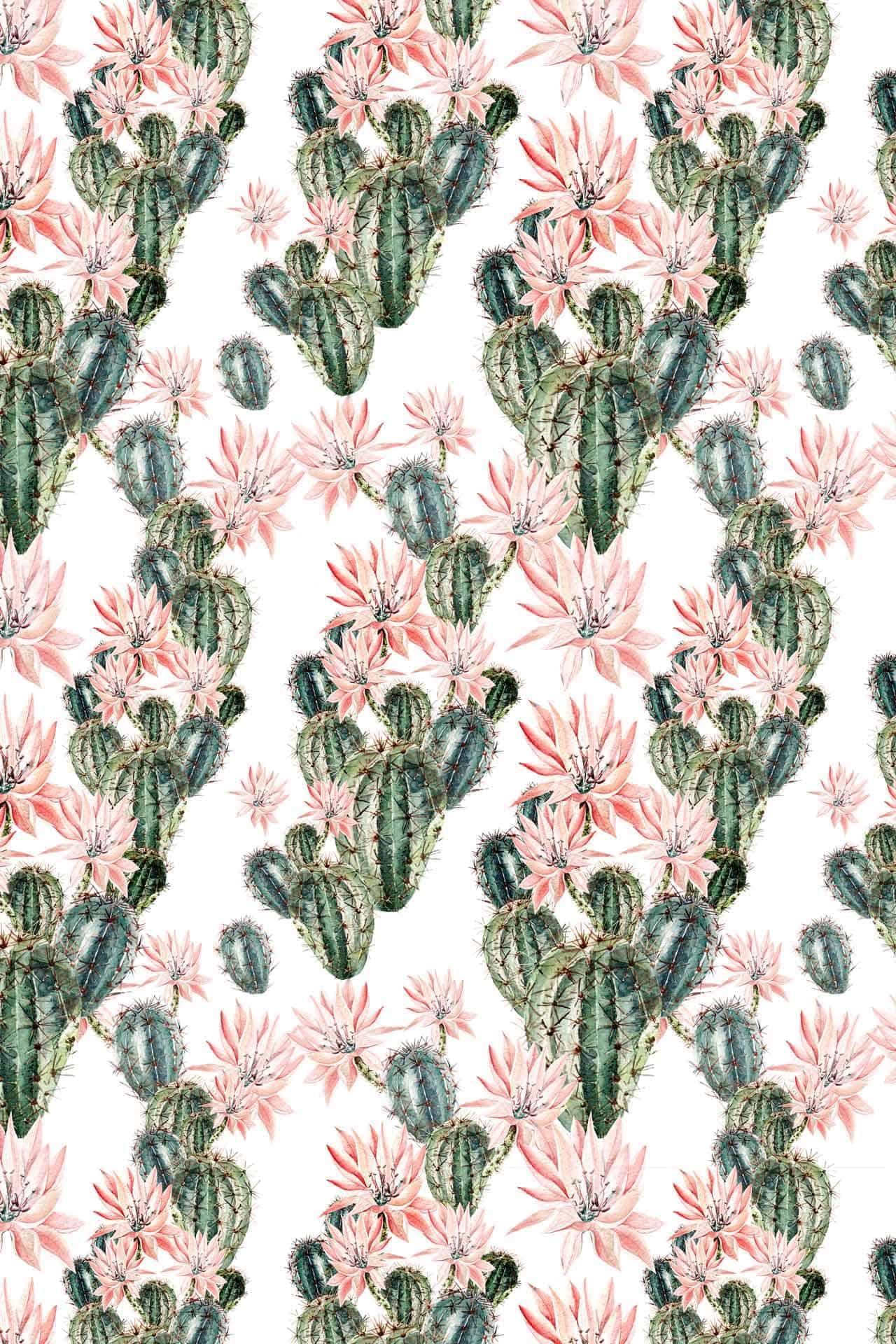 The bathroom features decorative wallpaper with bold, colorful floral patterns in shades of pink, green, and white. The distinctive wallpaper adds a vibrant backdrop behind the vanity and mirrors, easily highlighting its eye-catching design for search.