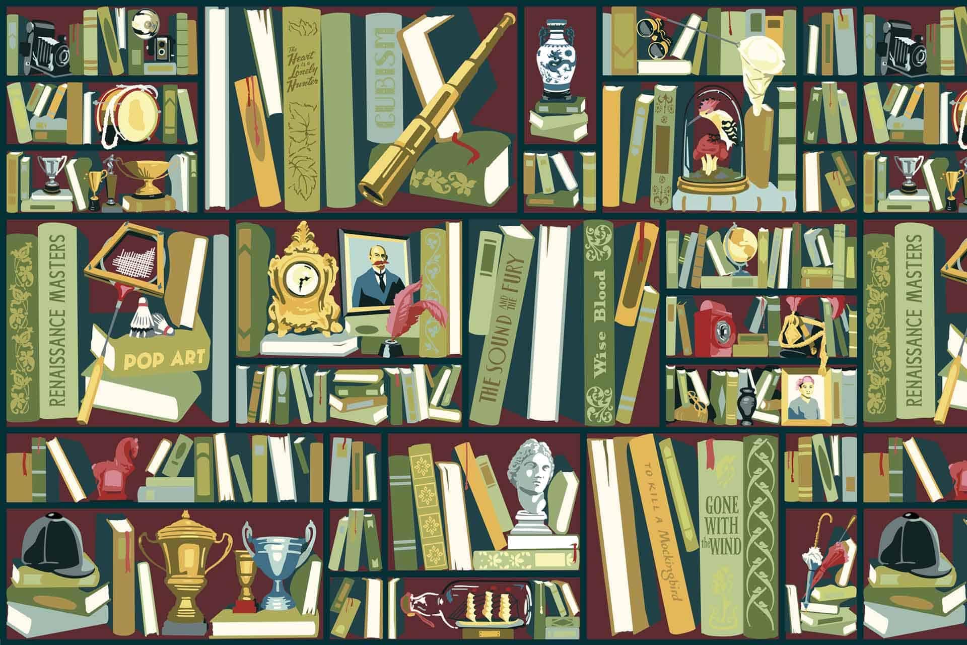 Library is a wallpaper design that forms part of our CS&Co collection. It is by the artist Kipper Millsap. As with all our designs, it will be redesigned to suit your wall size and shape.