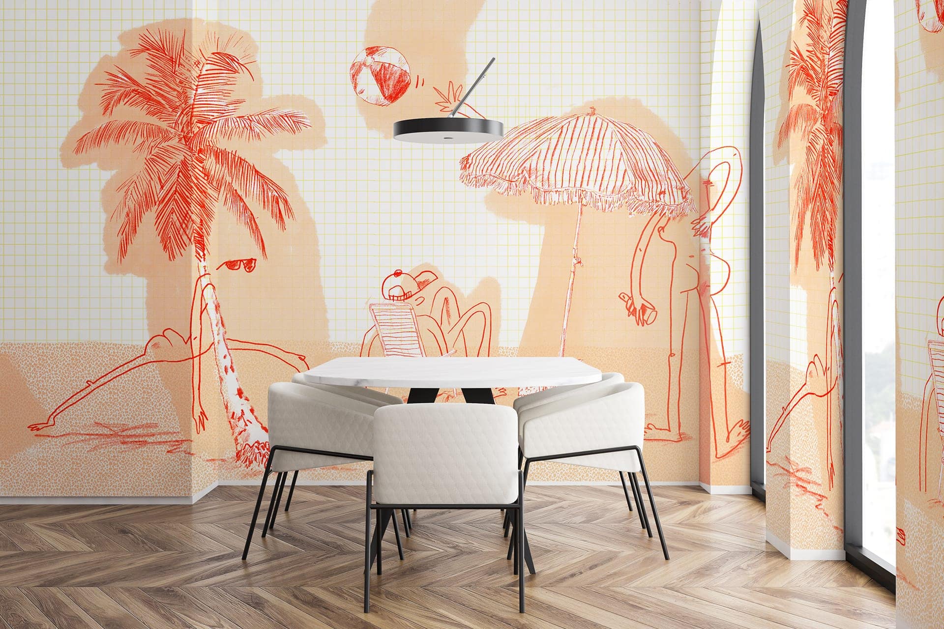 Beach Plz In is a wallpaper design that forms part of our CS&Co collection. It is by the artist Koos. As with all our designs, it will be redesigned to suit your wall size and shape.