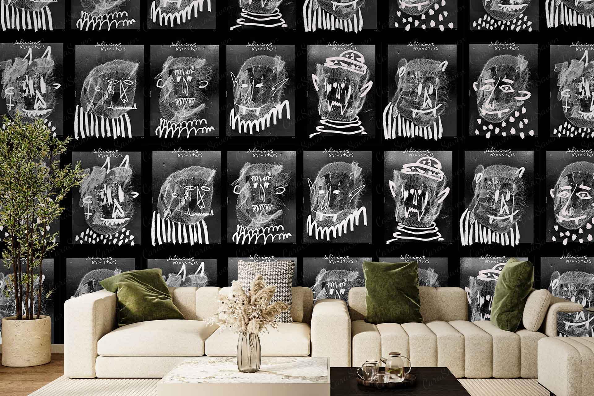 Delicious Monsters is a wallpaper design that forms part of our CS&Co collection. It is by the artist Koos. As with all our designs, it will be redesigned to suit your wall size and shape.