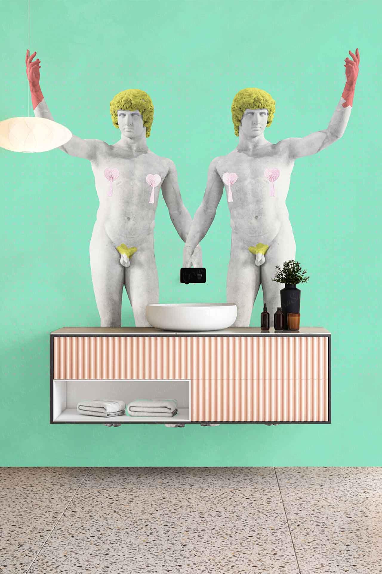 Greek Twins is a wallpaper design that forms part of our CS&Co collection. It is by the artist Koos. As with all our designs, it will be redesigned to suit your wall size and shape.