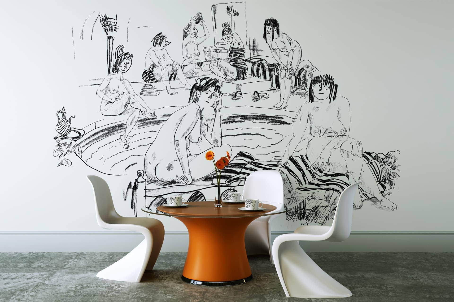 The Bathers 1 is a wallpaper design that forms part of our CS&Co collection. It is by the artist Koos. As with all our designs, it will be redesigned to suit your wall size and shape.