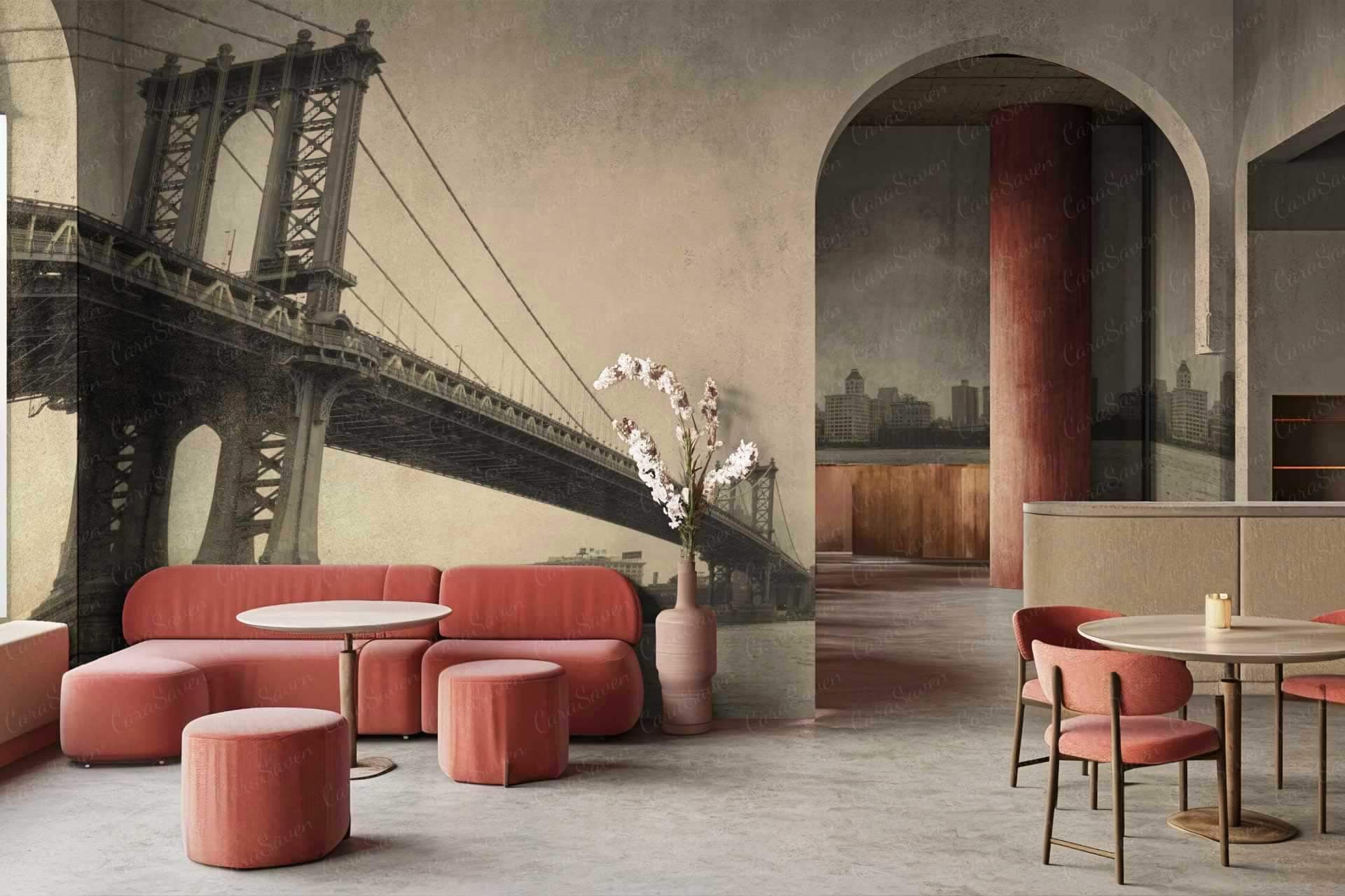 Build a Bridge is a wallpaper design that is part of our Landscape collection. As with all our designs, it will be redesigned to suit your wall size and shape. Additional changes can be made to the colour and scale of the design at your request.