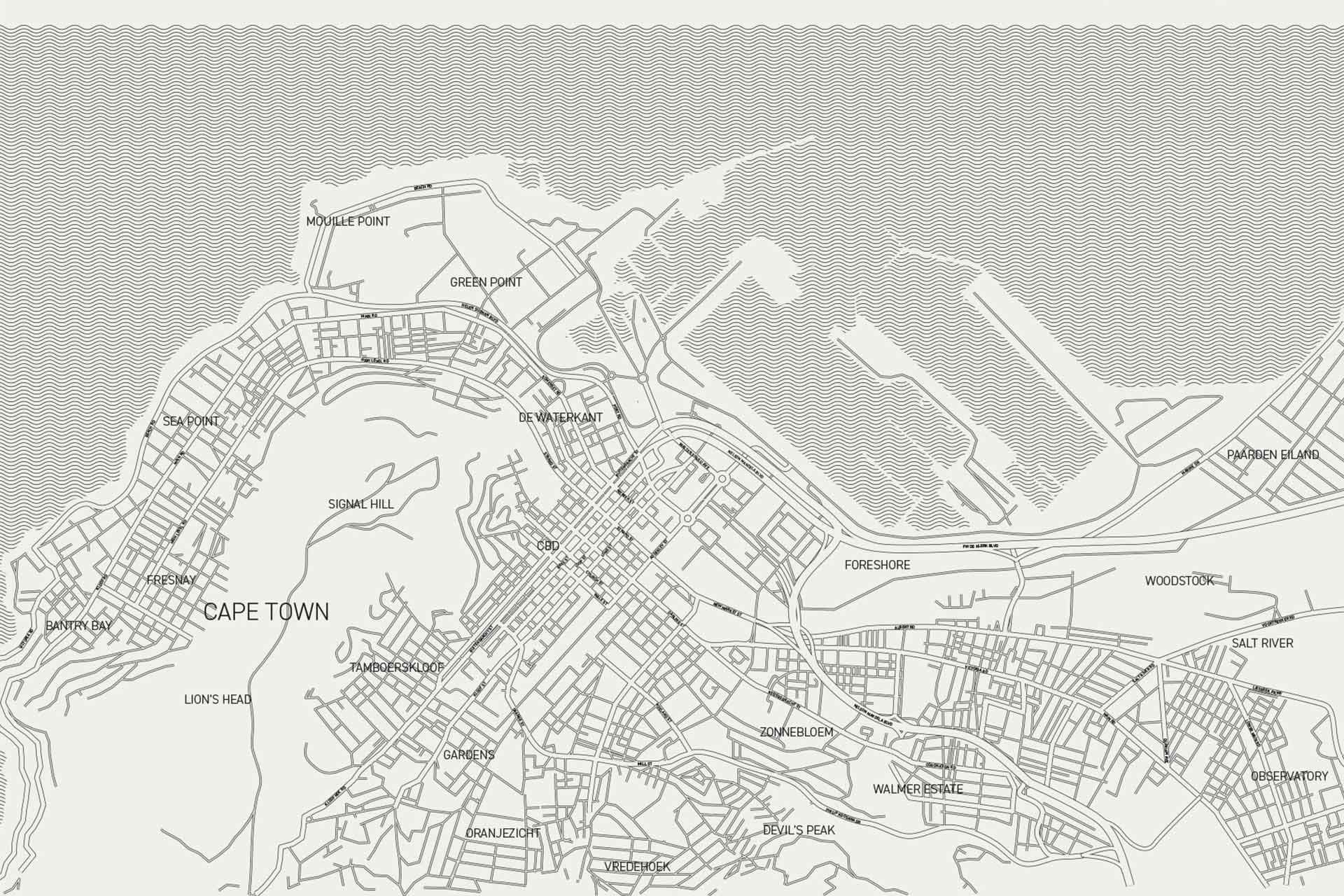 Love Jozi was formed in 2005 as a T-shirt company that drew on Johannesburg as its inspiration. Their offering has evolved into a select, high-end product and apparel range that extends beyond Johannesburg’s borders. Elements like street maps and architectural silhouettes translate into icons and textures, highly stylised and conceptually driven. Their look is clean yet complex, contemporary yet classic. This collaborative wallpaper series continues Love Jozi’s ongoing exploration and obsession with cities through cartography.