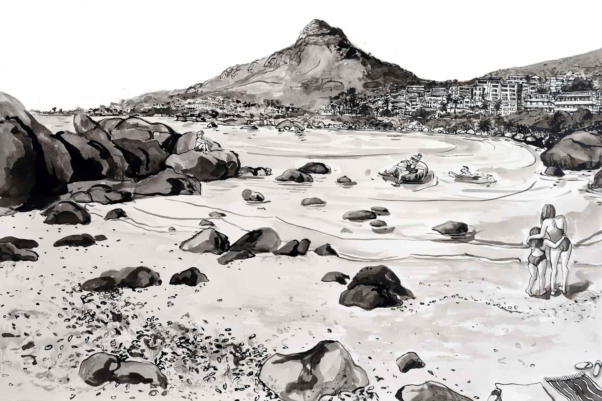 Bakoven Cove is a wallpaper design that forms part of our CS&Co collection. It is by the artist Lucie Demoyencourt. As with all our designs, it will be redesigned to suit your wall size and shape.