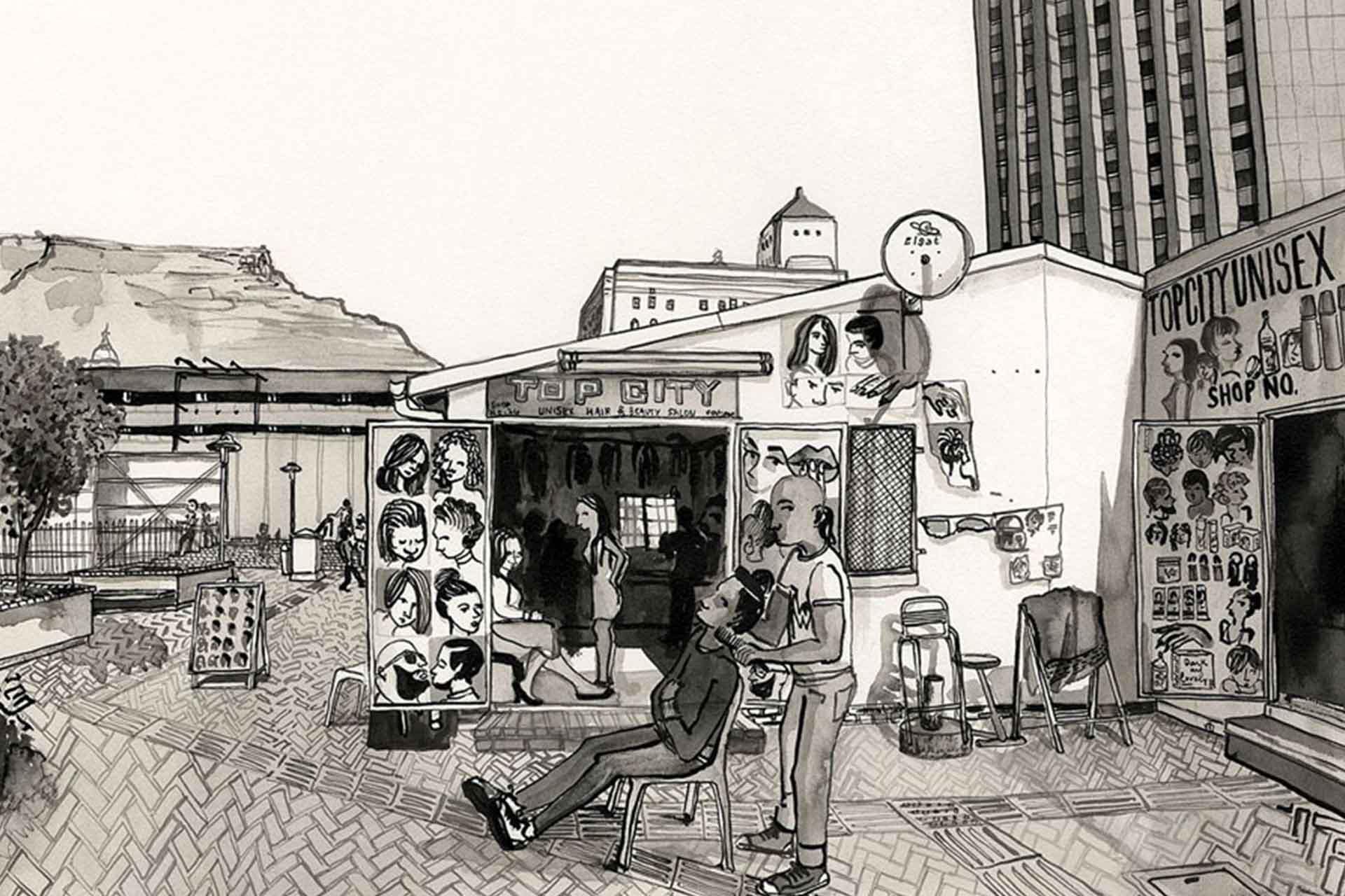 Barber Top Of The Station is a wallpaper design that forms part of our CS&Co collection. It is by the artist Lucie Demoyencourt. As with all our designs, it will be redesigned to suit your wall size and shape.