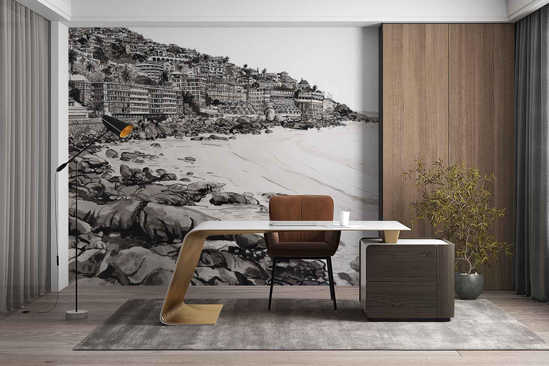 Blocks On The Rocks, Bantry Bay is a wallpaper design that forms part of our CS&Co collection. It is by the artist Lucie Demoyencourt. As with all our designs, it will be redesigned to suit your wall size and shape.