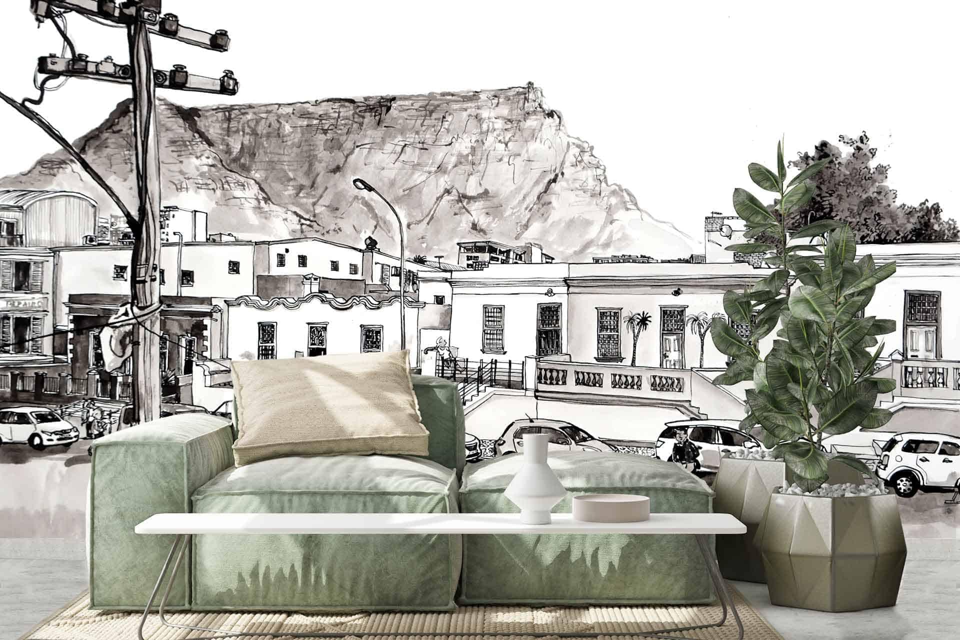 Bo Kaap Museum is a wallpaper design that forms part of our CS&Co collection. It is by the artist Lucie Demoyencourt. As with all our designs, it will be redesigned to suit your wall size and shape.