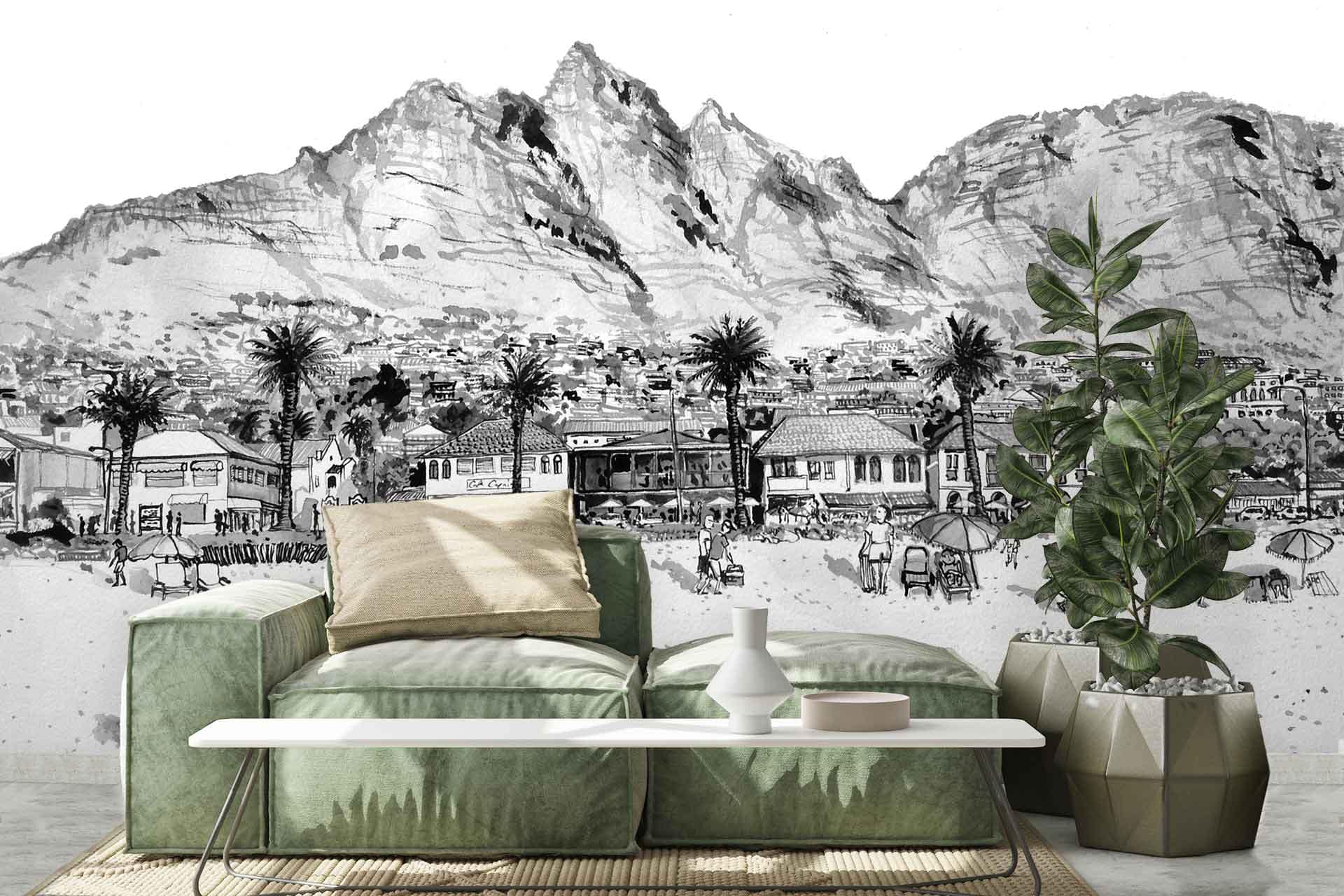 Camps Bay Beach is a wallpaper design that forms part of our CS&Co collection. It is by the artist Lucie Demoyencourt. As with all our designs, it will be redesigned to suit your wall size and shape.