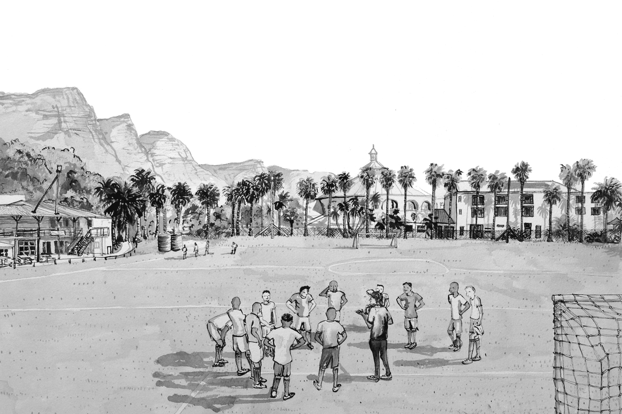 Camps Bay Football Club is a wallpaper design that forms part of our CS&Co collection. It is by the artist Lucie Demoyencourt. As with all our designs, it will be redesigned to suit your wall size and shape.