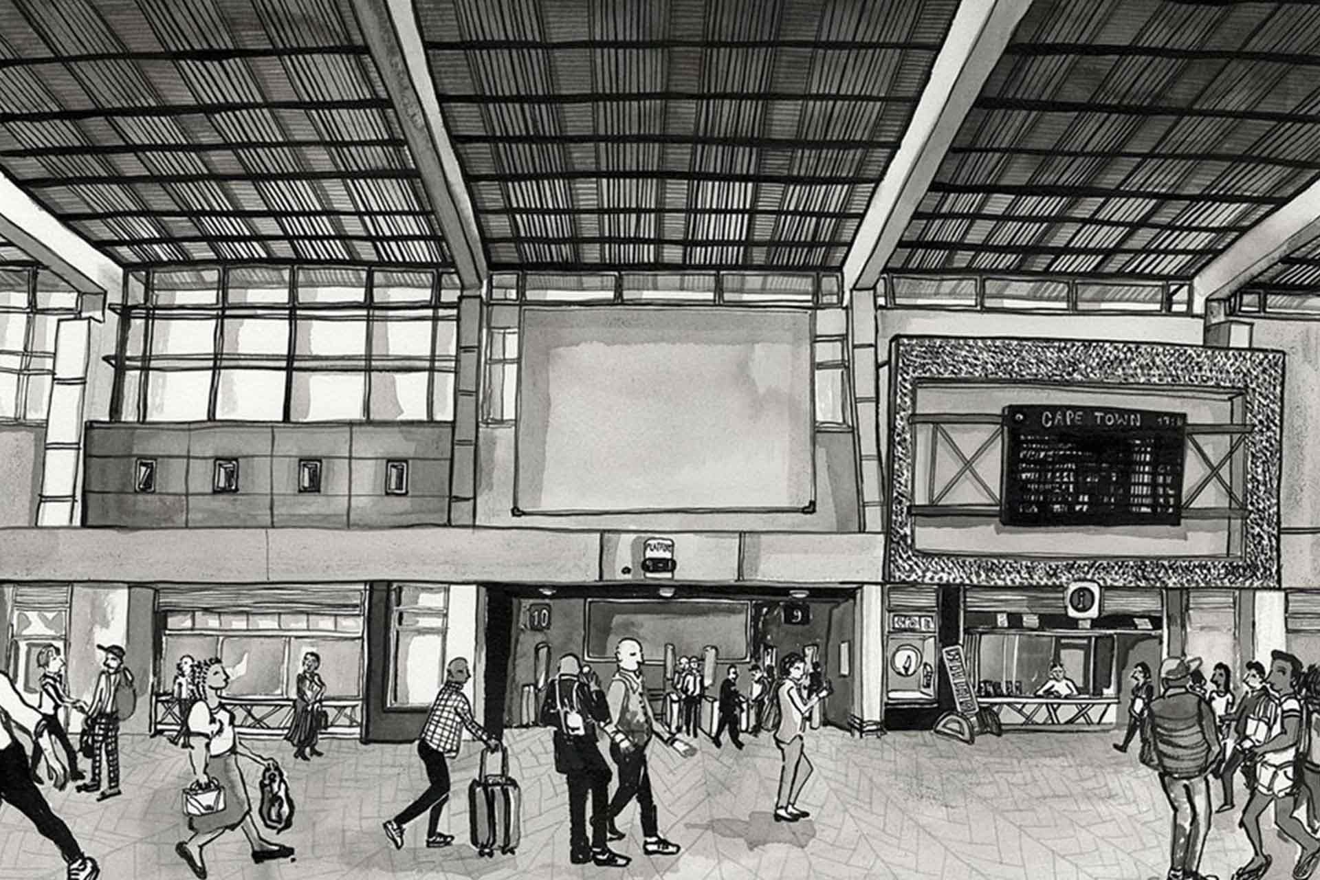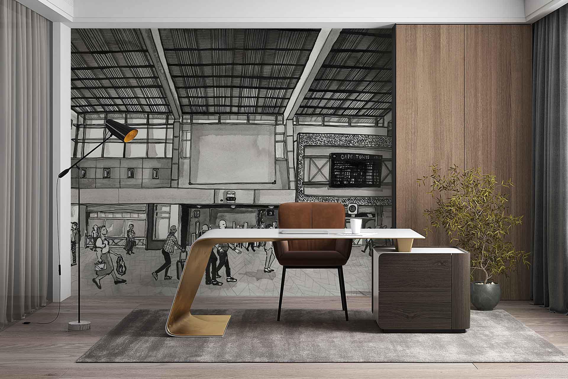 Cape Town Station is a wallpaper design that forms part of our CS&Co collection. It is by the artist Lucie Demoyencourt. As with all our designs, it will be redesigned to suit your wall size and shape.