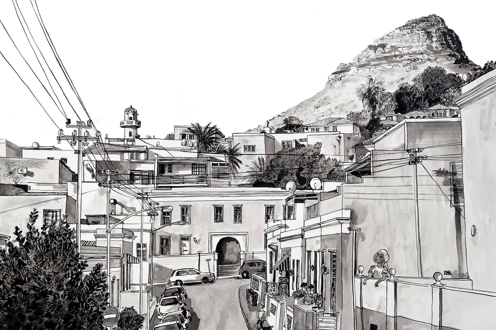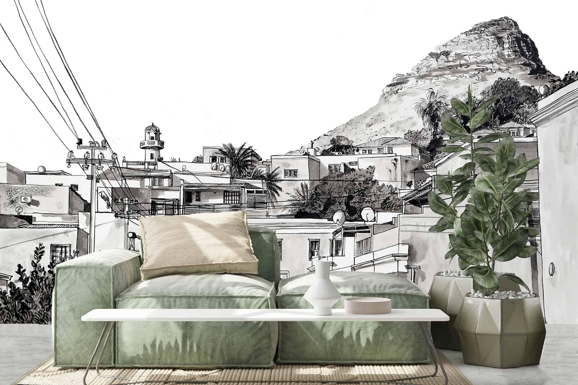 Chiappini Street is a wallpaper design that forms part of our CS&Co collection. It is by the artist Lucie Demoyencourt. As with all our designs, it will be redesigned to suit your wall size and shape.