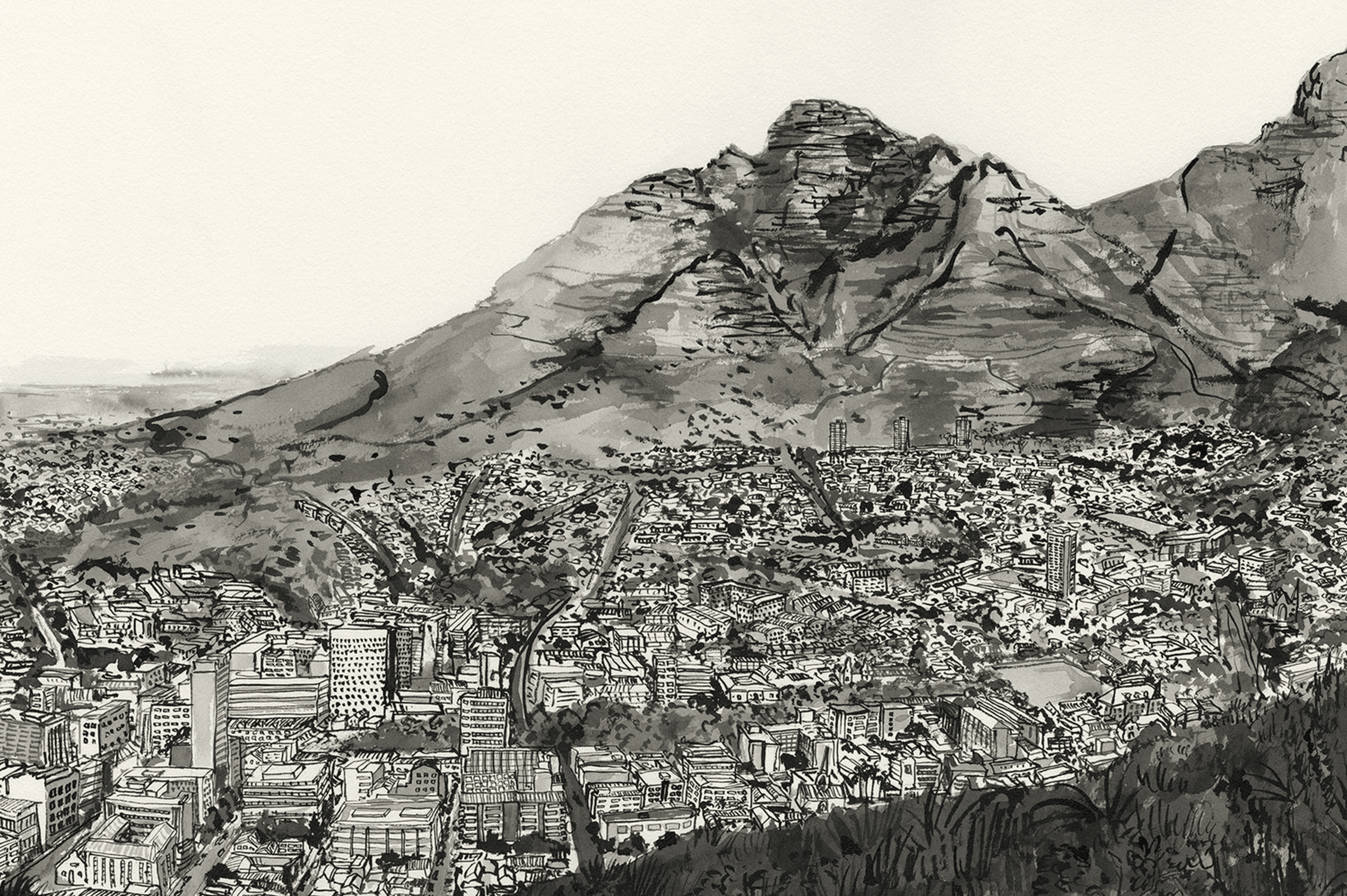 Devils Peak is a wallpaper design that forms part of our CS&Co collection. It is by the artist Lucie Demoyencourt. As with all our designs, it will be redesigned to suit your wall size and shape.