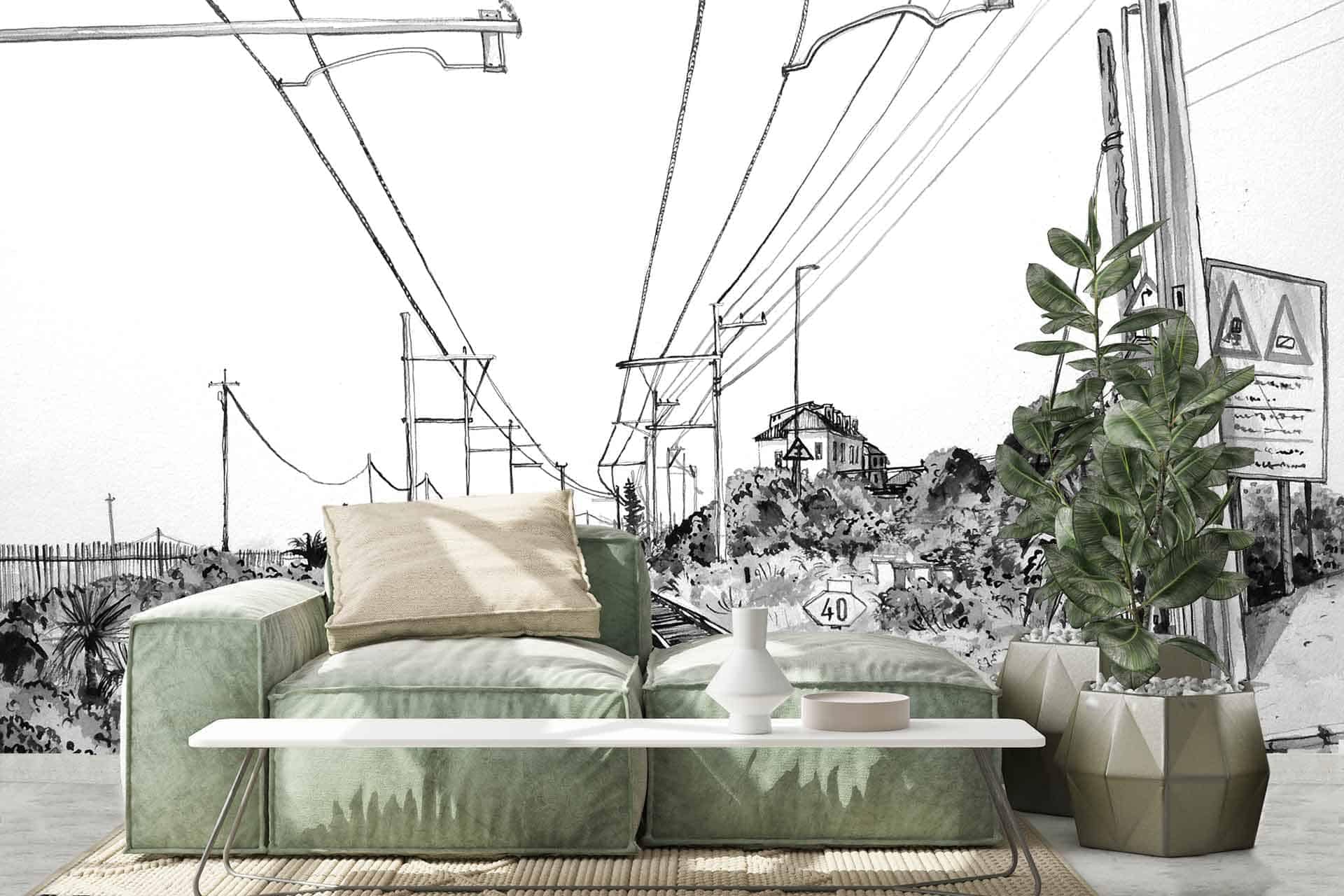 Kalk Bay Rail Crossing is a wallpaper design that forms part of our CS&Co collection. It is by the artist Lucie Demoyencourt. As with all our designs, it will be redesigned to suit your wall size and shape.